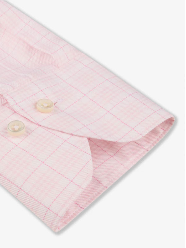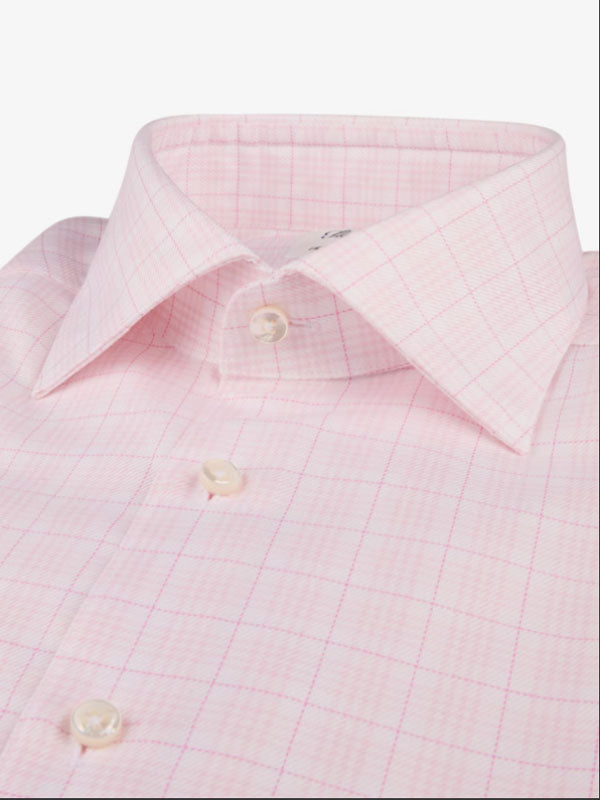 Denne rutete twillskjorten er laget av twofold bomull, og kombinerer klassisk mønster med eksklusive detaljer. Skjorten har en moderat cut away-krage, enkle mansjetter og er ferdigstilt med perlemorsknapper som gir et raffinert uttrykk.