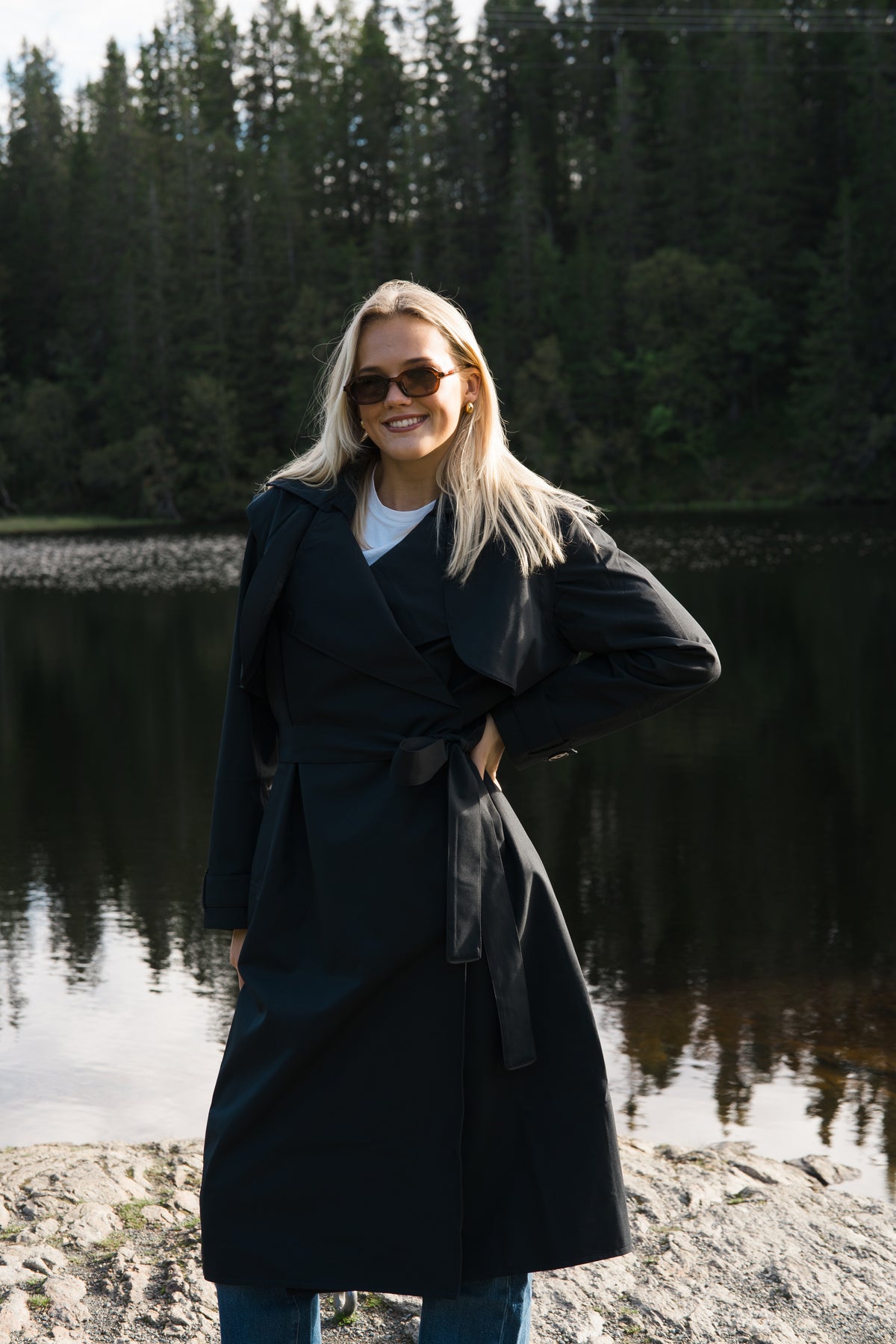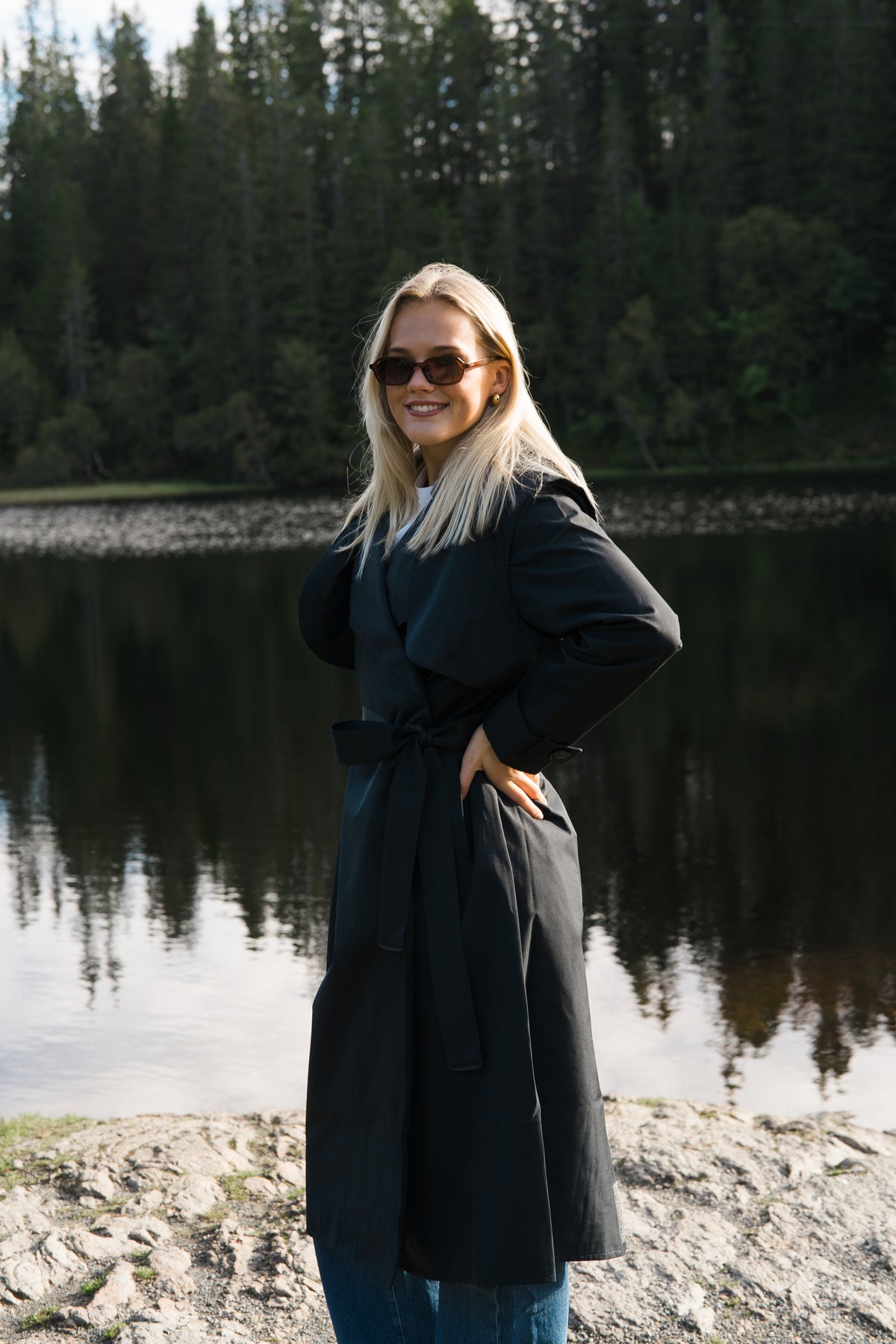 Regndråpe Trench Coat i fargen Sand, er en vanntett regnjakke laget av resirkulert tekstiler med hele 20.000 i vannsøyle.