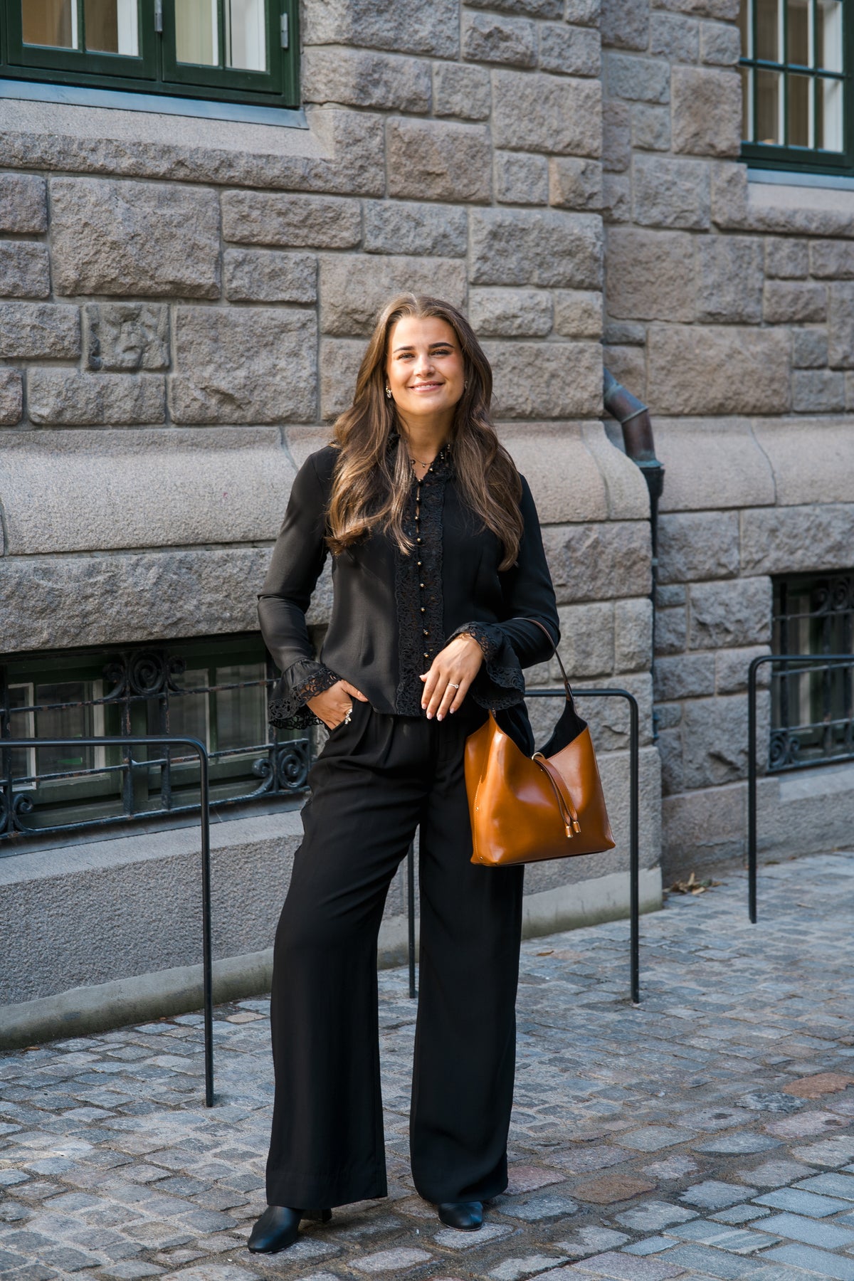Lace Trim Wide Leg Pant fra Zimmermann. En bukse med høy midje, strikk foran, sidelommer, avtakbart midjebelte og blondedetaljer. Buksen har vide ben med blondekant på siden som gir det lille ekstra. Perfekt å bruke til finere anledninger, og til hverdag.