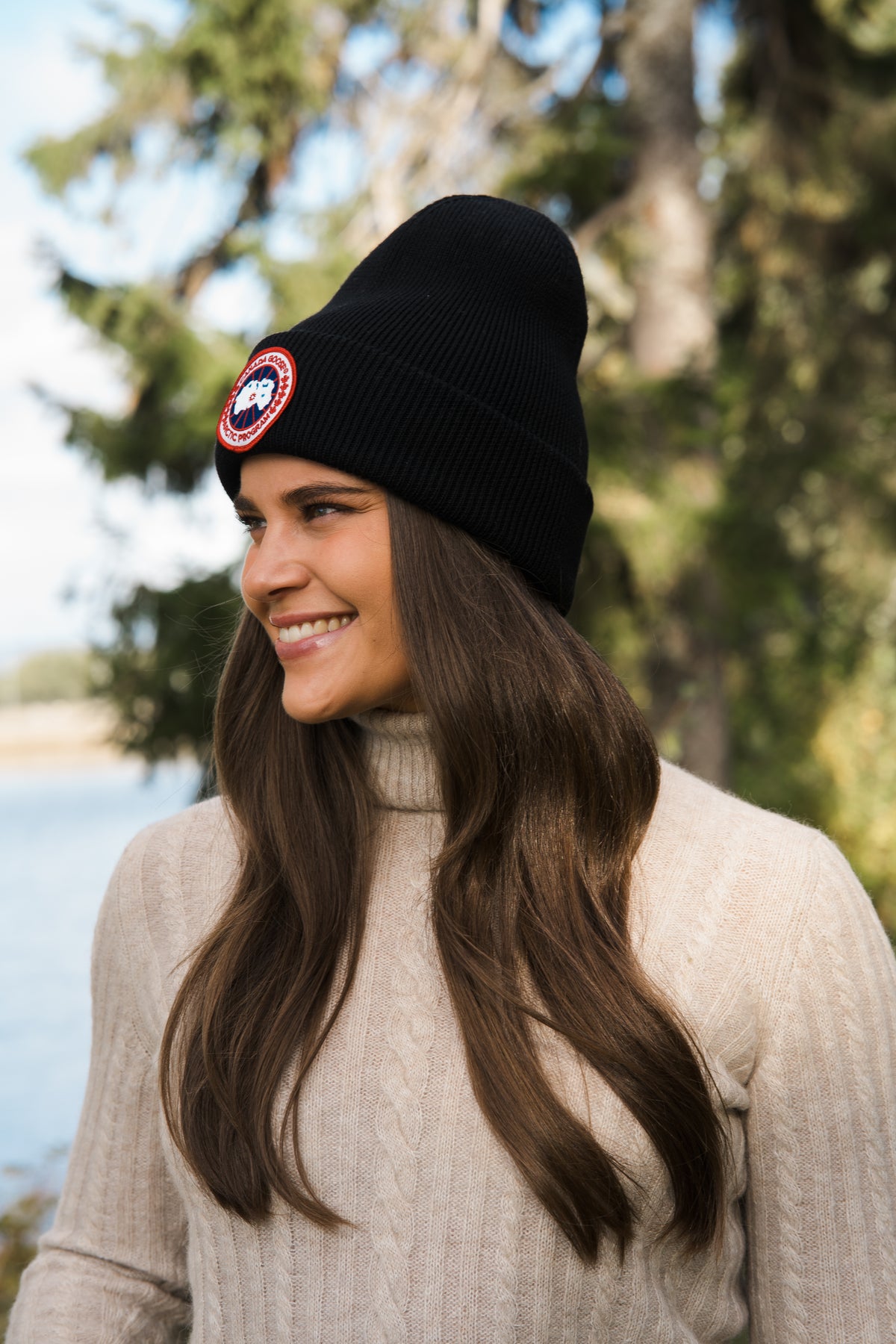 Klassisk og fin lue fra Canada Goose med logo.
