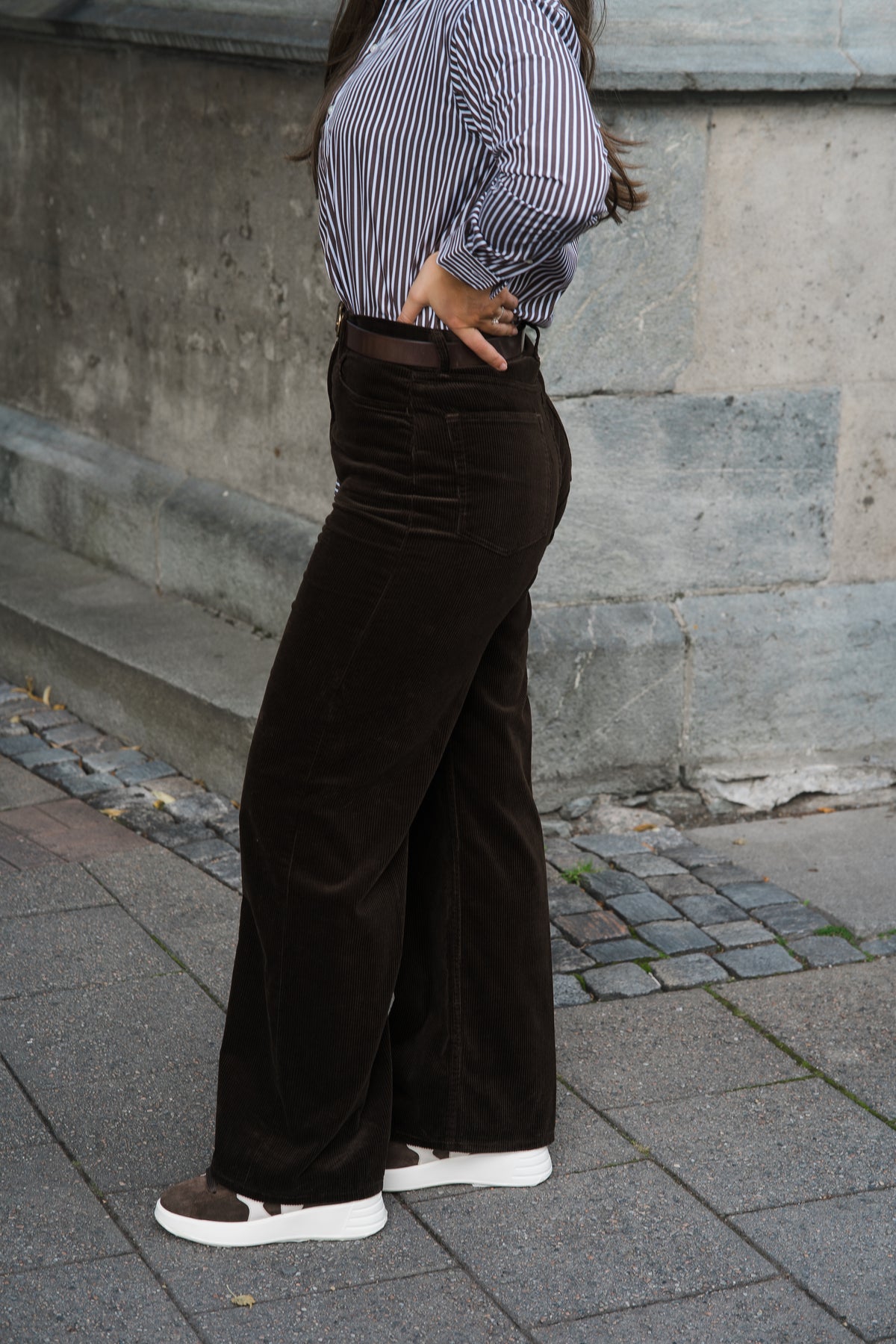 Woven-Wide Leg Pants fra Polo Ralph Lauren. Disse buksene har en rett passform, og laget av bomullskordfløyel, med en høy midje og diskret sleng. Perfekt å style sammen med både skjorte og genser til hverdagsbruk.