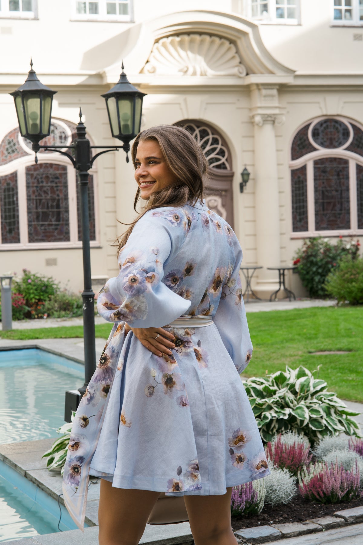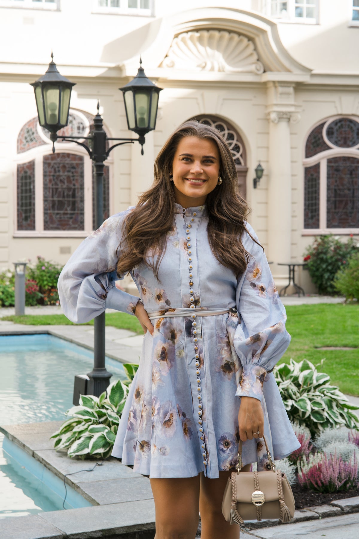 Hypnotic Buttoned Mini Dress fra Zimmermann. En nydelig kjole laget i 100% lin med et romantisk mønster, skjortekrage, voluminøse og med en nydelig silhuett. Kjolen har et matchende belte i midjen som fremhever en feminin silhuett, og knapper foran.