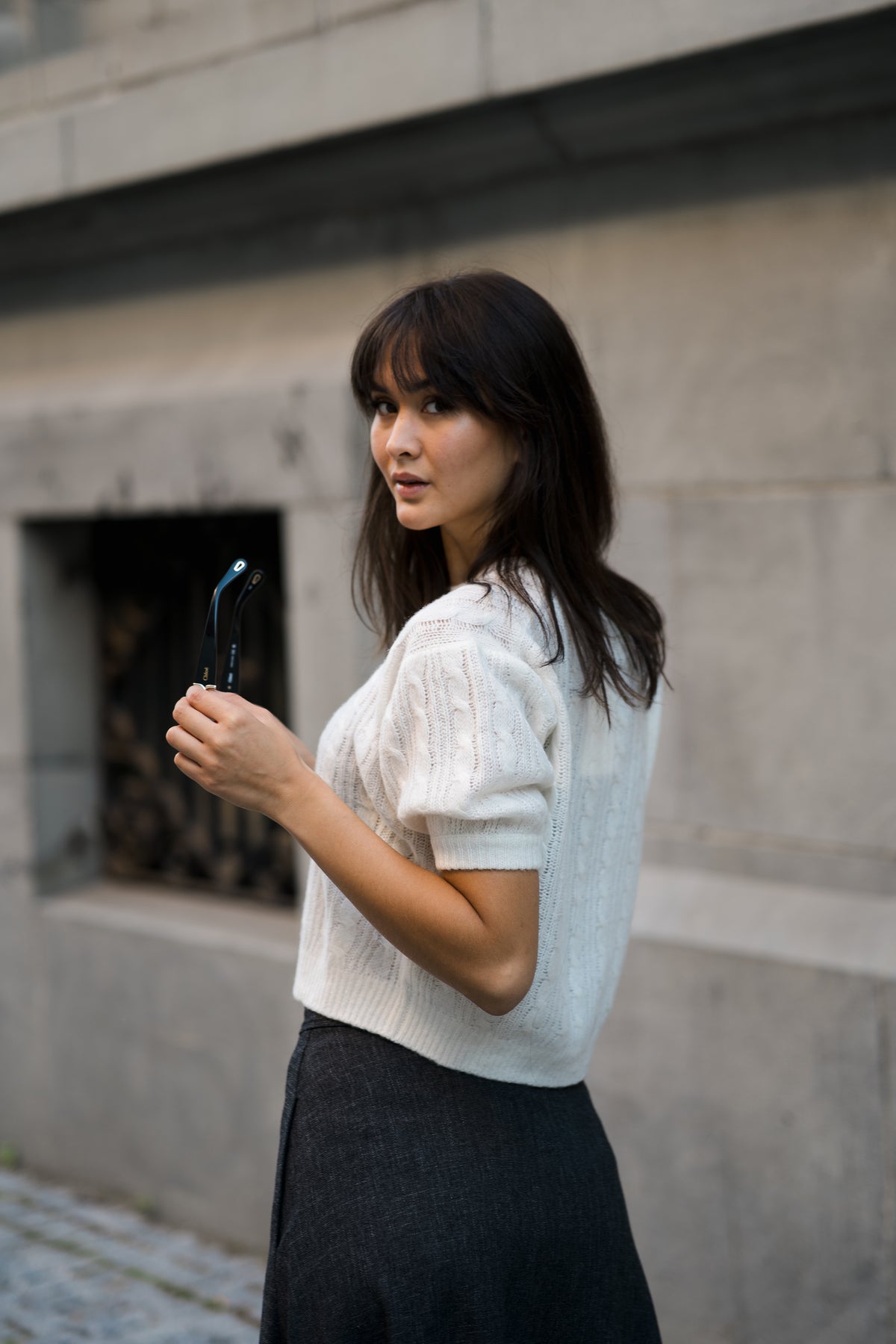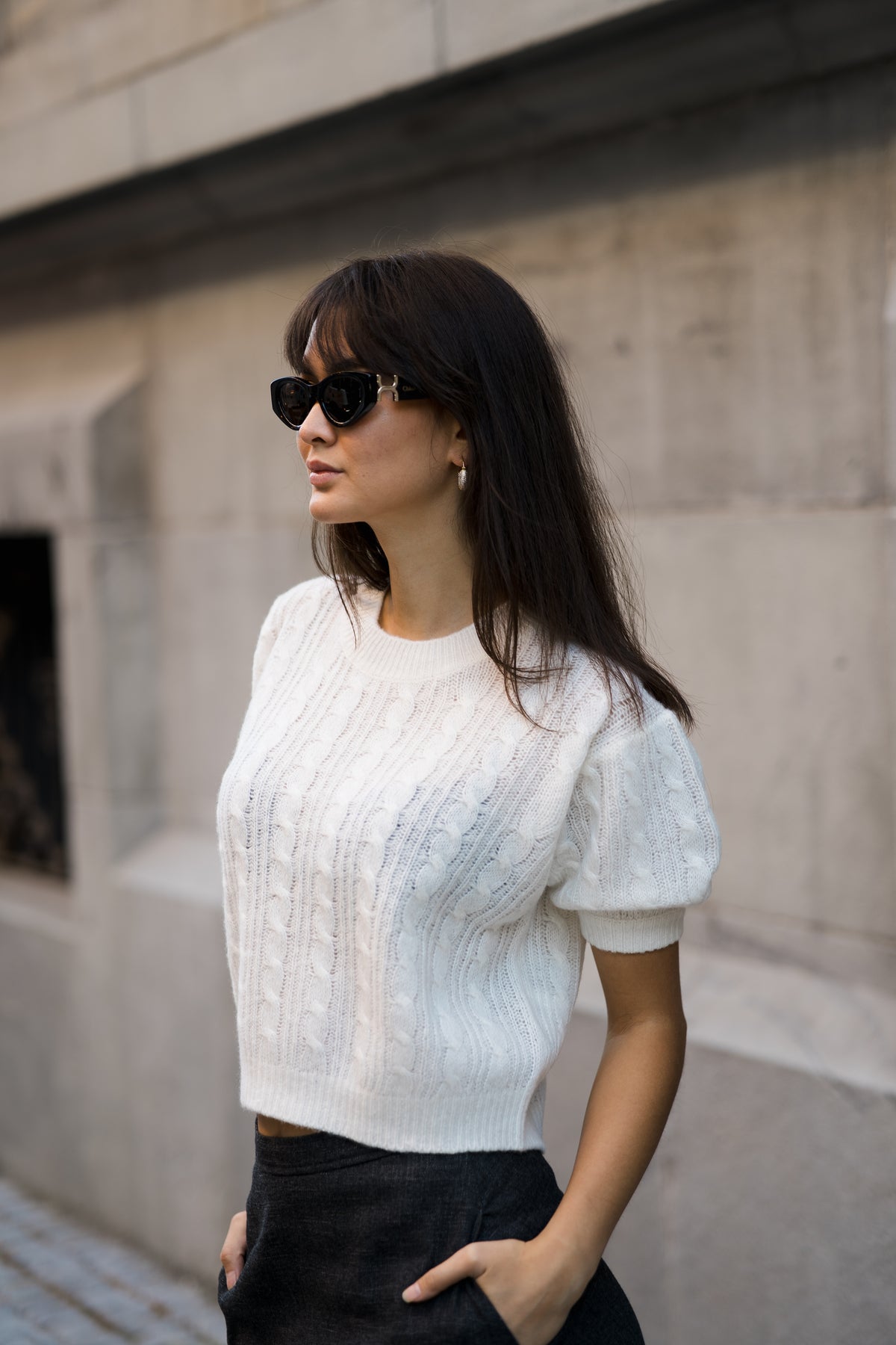 Kenzie Sweater fra Lisa Yang. En myk og voluminøse topp, med flettestrikkede detaljer i en luksuriøs blanding av cashmere og silke. Den har en avslappet passform, kort silhuett, med rund hals og korte puffermer med ribbekanter overalt. Perfekt å style sammen med både bukse og skjørt.