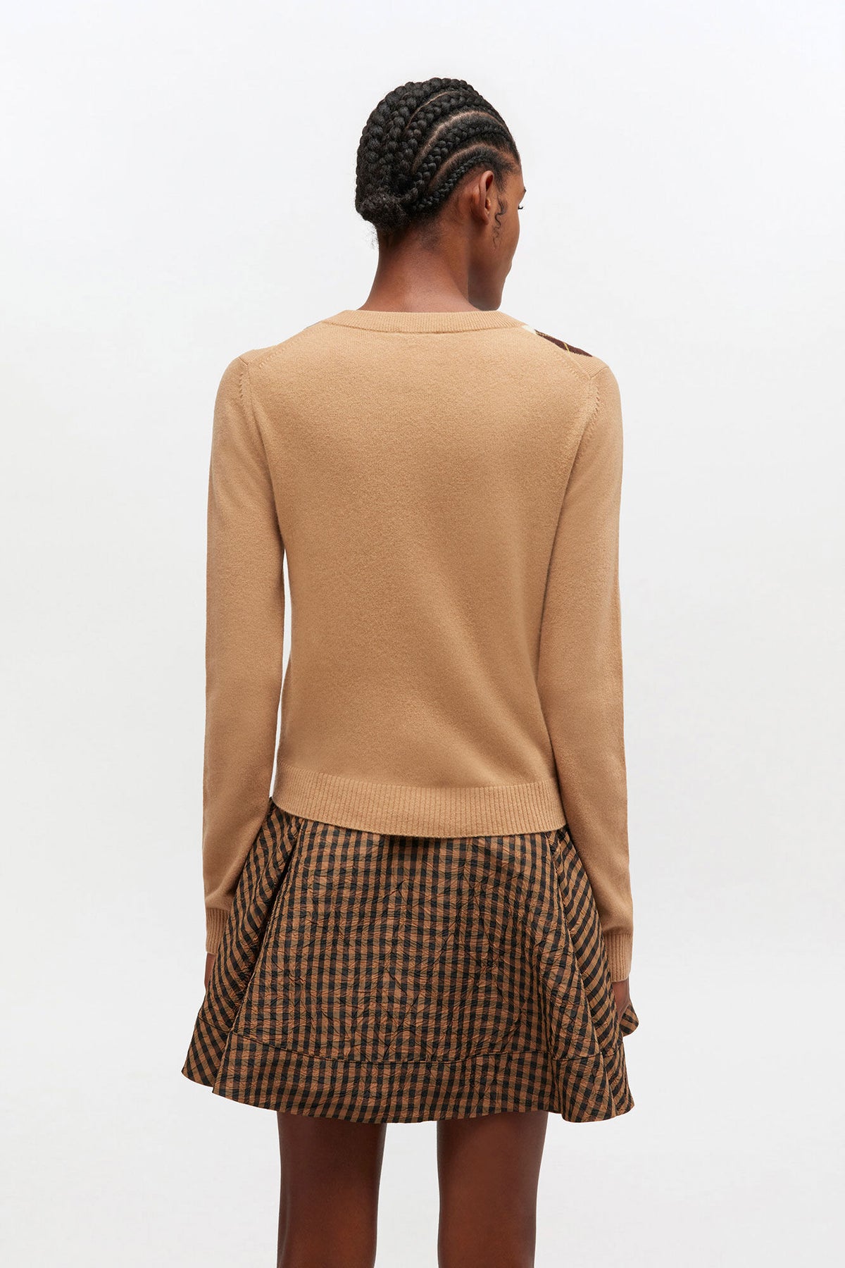 Cashmere Wool Mix Argyle Cardigan fra Ganni. En cardigan med et rutete mønster i flere farger, rund hals og knappelukking foran. Den har to frontlommer, og den ikoniske Ganni-logoen på venstre bryst.