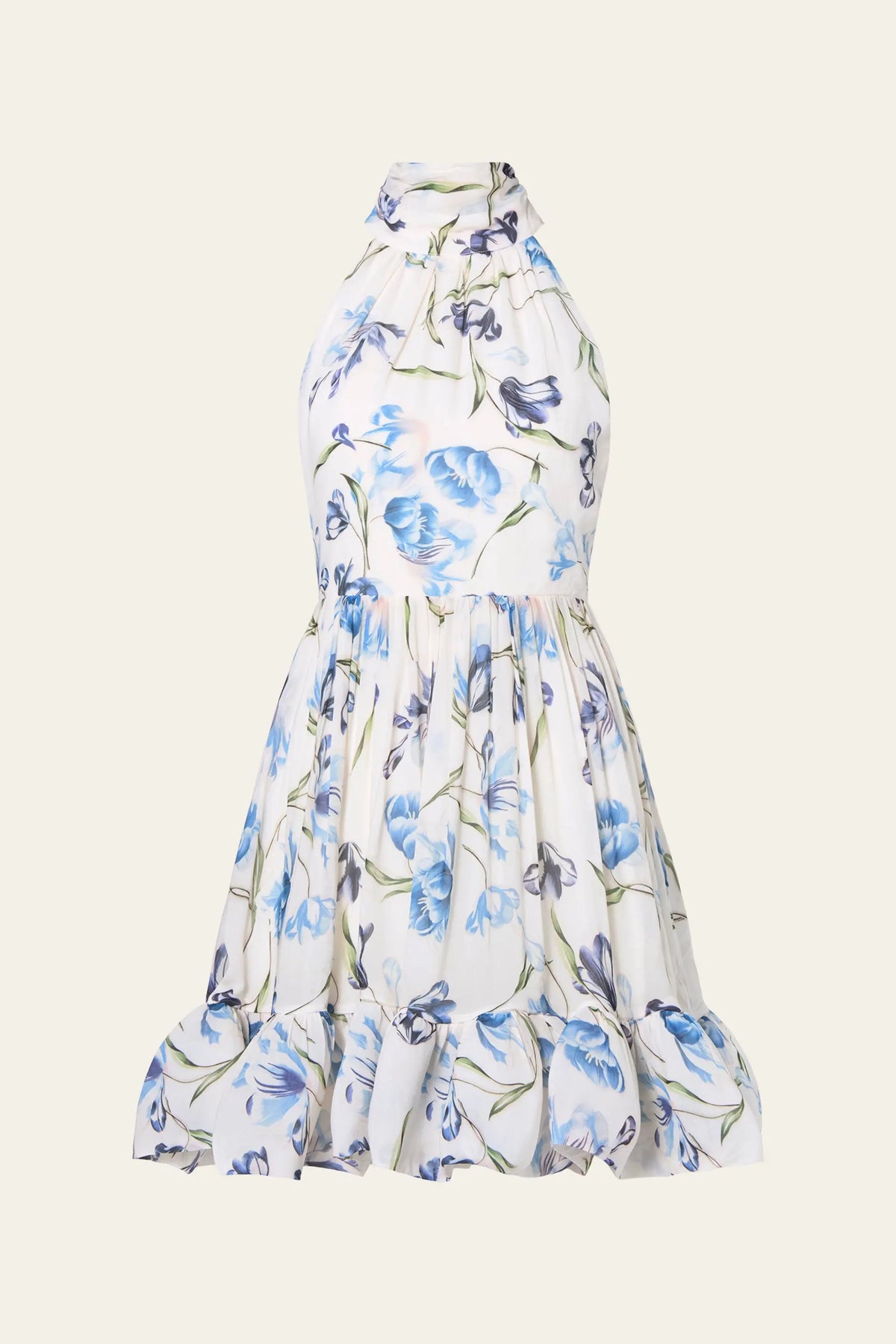 Halterneck mini dress, with an open back, ties in neck, frilled skirt and defined waistline [b]DETAILS[/b] • Halterneck • Frill detail • Bow closure • Open back • Shell: 100% Polyester Lining: 97% Polyester 3% Spandex • Dry Clean Made in Guangdong Province, China Fits true to size. Model is wearing size S and is 178 cm tall.
