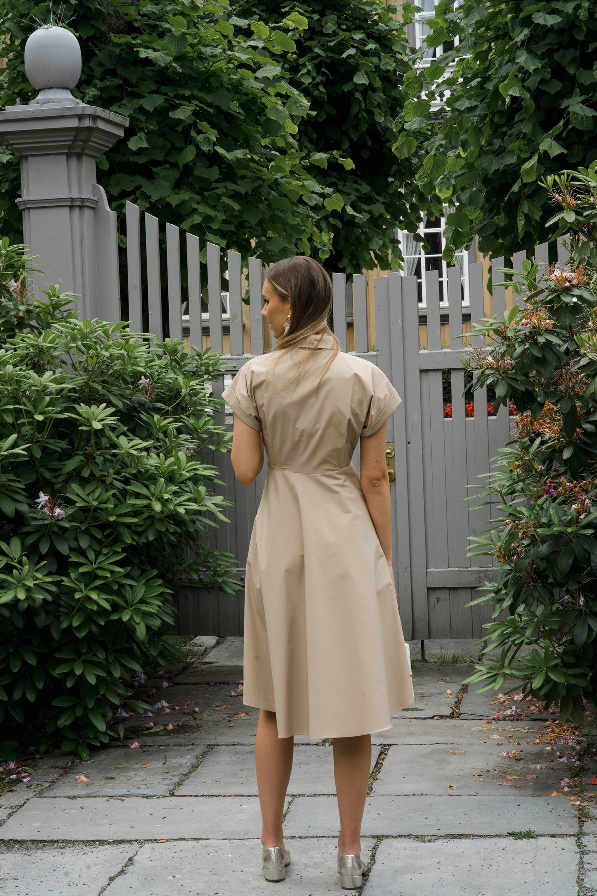 Poplin power dress fra Dorothee Schumacher er en lett og deilig kjolen laget i bomull. Den har en klassisk fasong, med en liten arm, klassisk krage som kneppes igjen med knapper, og skjørt med a-fasong. Perfekt til både hverdags og finere anledninger.