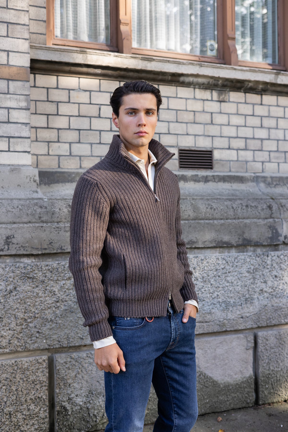 Jakke fra Gran Sasso laget i en myk og behagelig ullblanding, med toveis glidelåslukking og en normal passform. Denne jakken er et allsidig plagg som passer til flere anledninger,  og med skjulte praktiske lommer. Perfekt til hverdagsbruk sammen med en jeans.