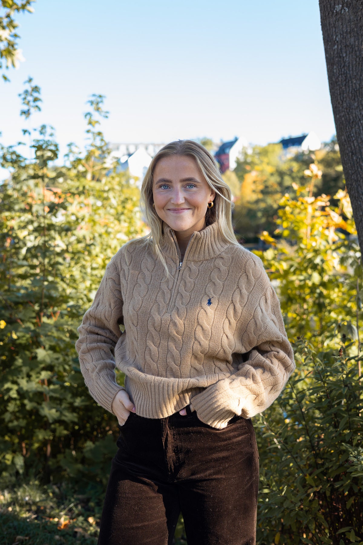 Sweater-Pullover fra Polo Ralph Lauren. En nydelig kabelstrikket genser i italiensk ull og cashmere, som gir en myk og grov tekstur. Genseren har en avslappet passform med høy hals og half-zip, med den signaturbroderte ponny-logoen på brystet.