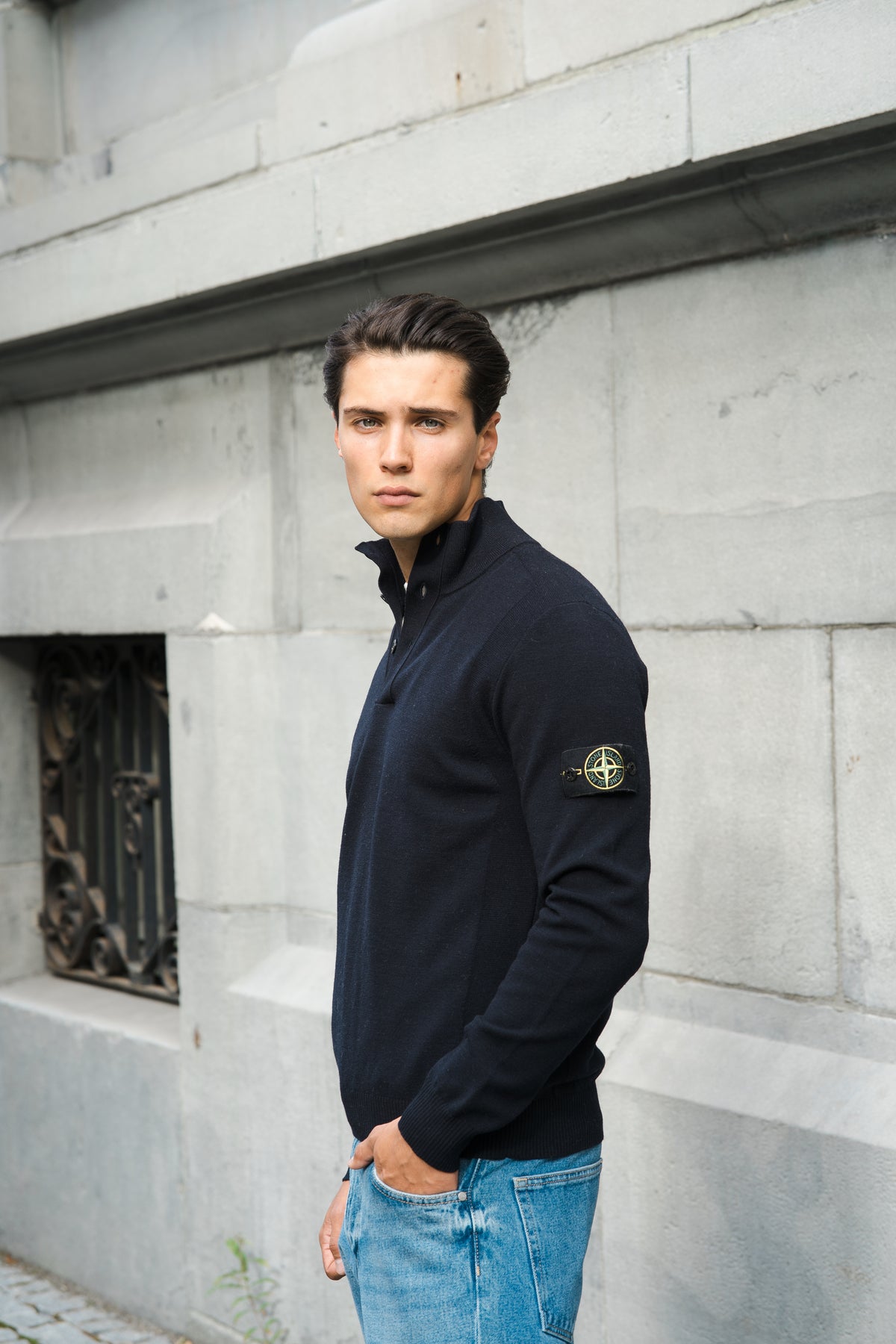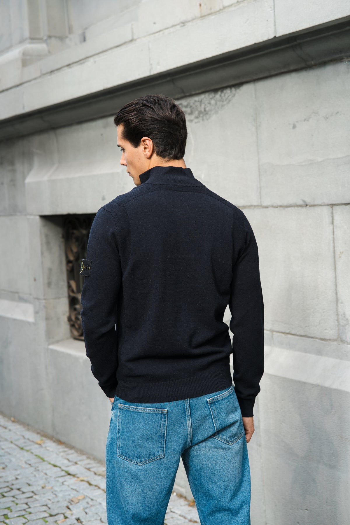 LS Polo fra Stone Island. Strikkegenser med krage og tre knapper i halsen. Genseren har en normal passform, det ikoniske Stone Island-merke på venstre erme og ribbestrikket kant i mansjetter og nederst på plagget. Perfekt å bruke til hverdag.