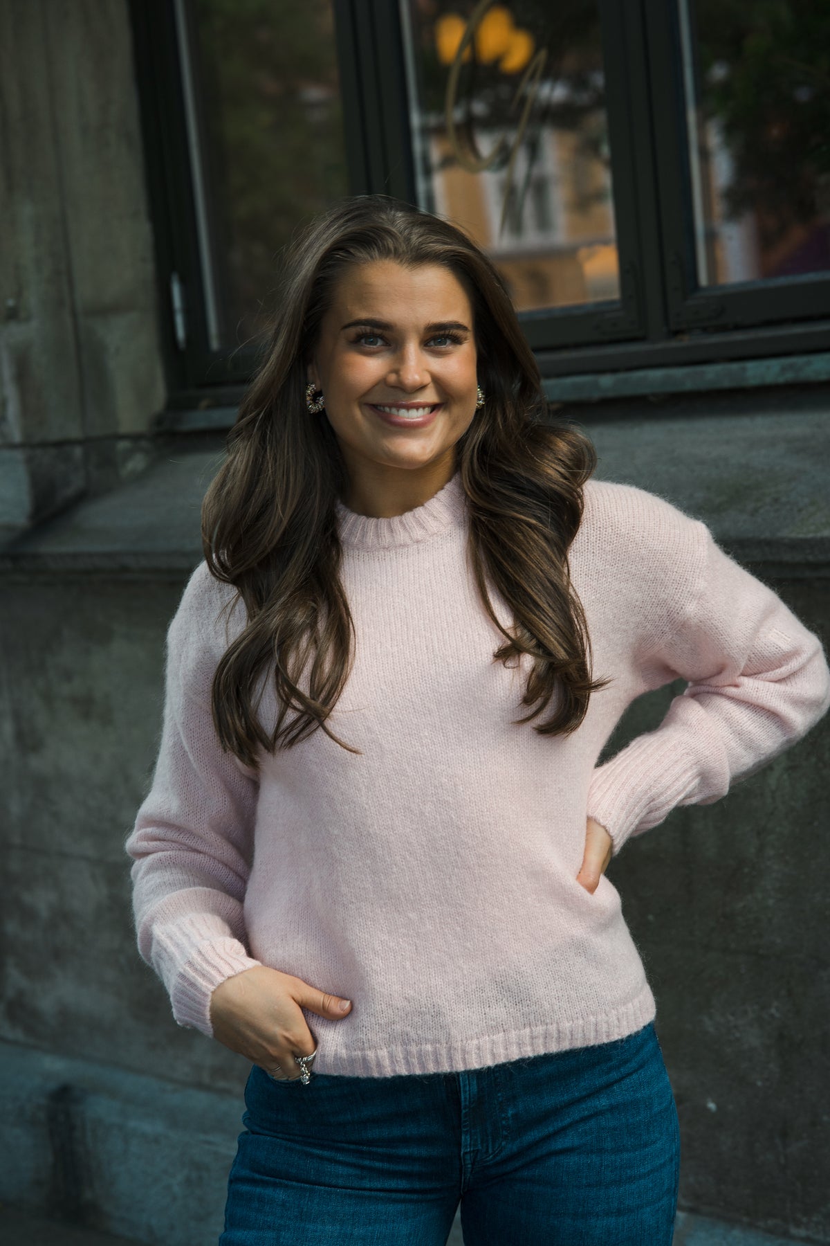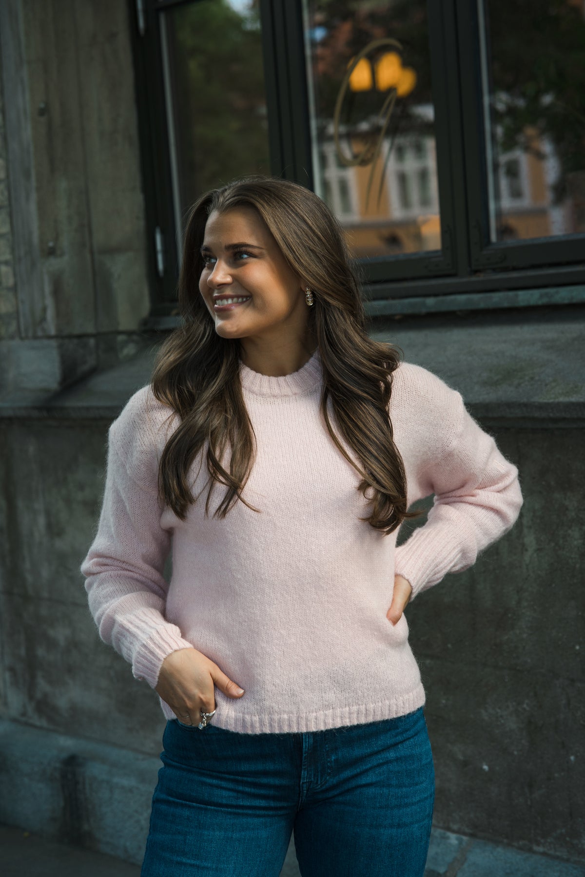 Brie Sweater fra By Malene Birger. Fullfør vintergarderoben din med en genser som kan brukes til omtrent alt. Denne nydelige genseren er laget i en varm blanding av ull og mohair, med en tidløs silhuett som er enkelt dekorert med ribbekanter. Perfekt å style til både bukse og skjørt.