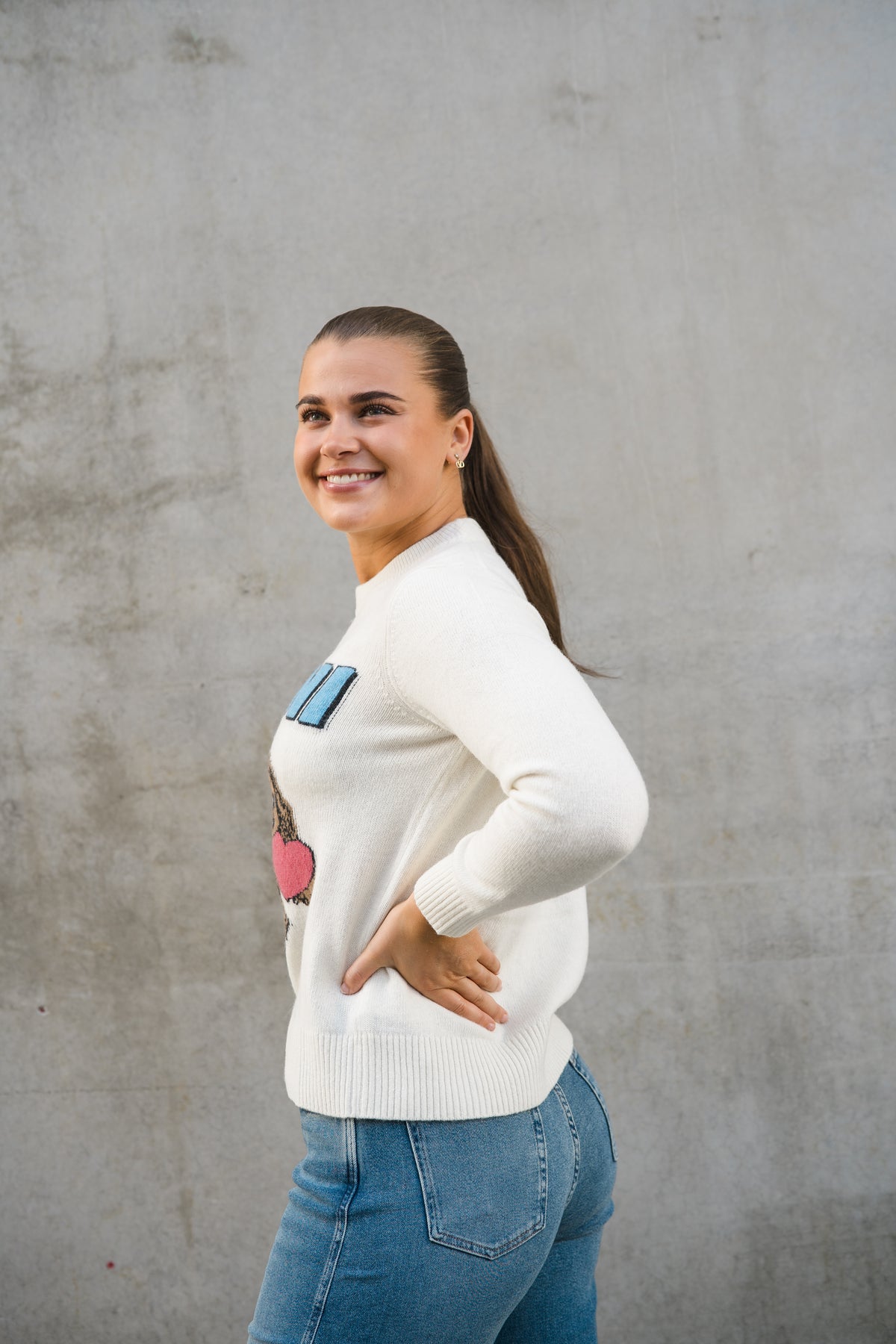 Graphic Wool Mix Fluffy Puppy Love Crewneck fra Ganni. En strikkegenser med rund hals, lange ermer, ribbestrikkede kanter og grafisk valpetrykk foran. Genseren er perfekt å bruke sammen med en bukse eller et skjørt.