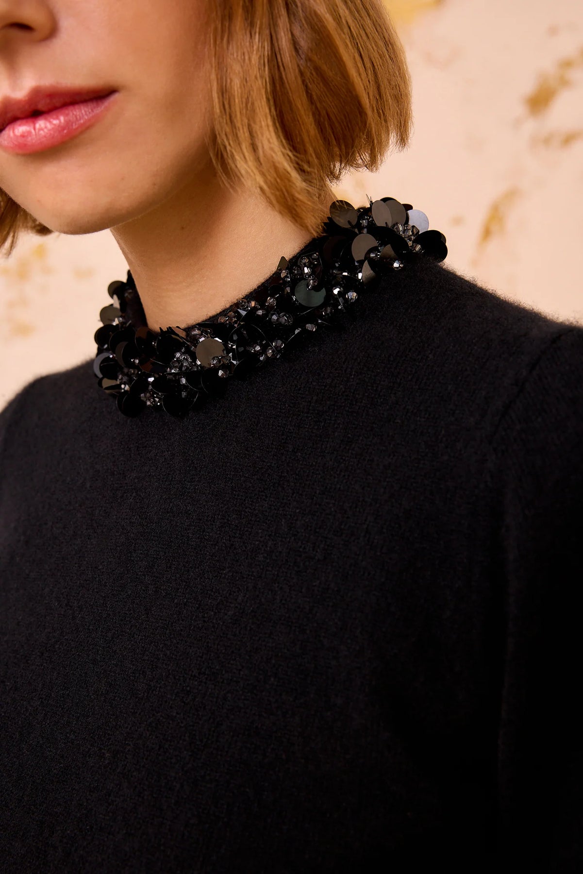 Liv Embroidered Cashmere Short Sleeve Knit fra Ulla Johnson. En topp som blander en enkel silhuett med et utsmykket preg, med perler og paljetter rundt kragen. Denne toppen er laget i 100% cashmere, og kommer i en avslappet passform med korte ermer.