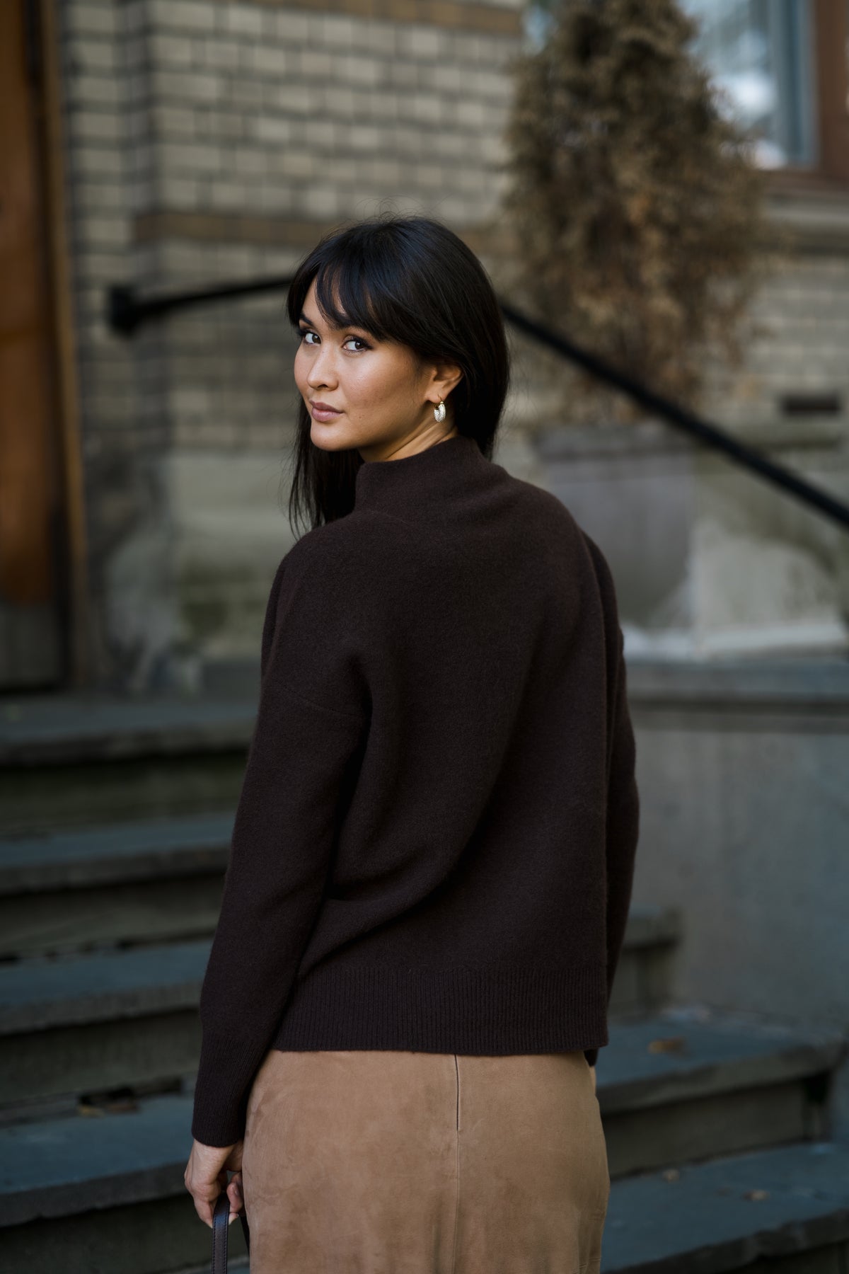 Vince sin signatur funnel-neck genser har en avslappet passform, halvhøy hals og smale ermer. Denne genseren i kokt cashmere fra Vince er supermyk, og passer til både jeans og skjørt.