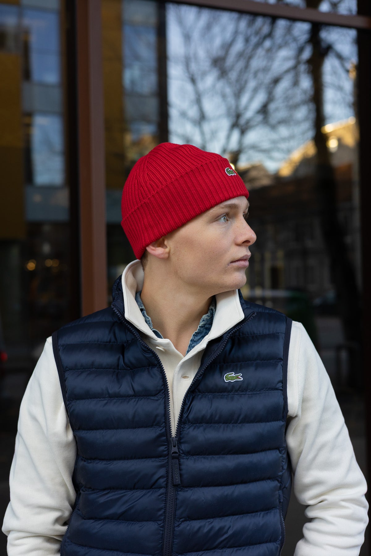 En klassisk ribbestrikket lue laget i myk ull som holder deg varm og komfortabel. Den ikoniske grønne krokodille-logoen gir et tidløst uttrykk. Finnes i flere farger.