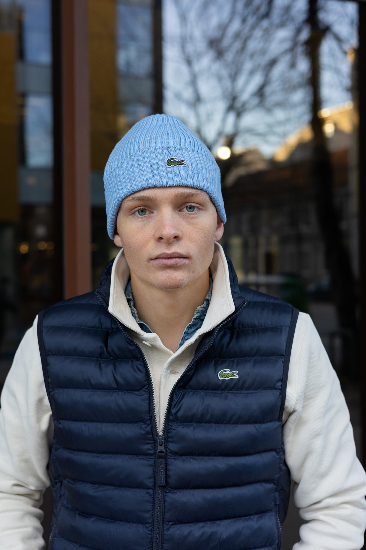 En klassisk ribbestrikket lue laget i myk ull som holder deg varm og komfortabel. Den ikoniske grønne krokodille-logoen gir et tidløst uttrykk. Finnes i flere farger.