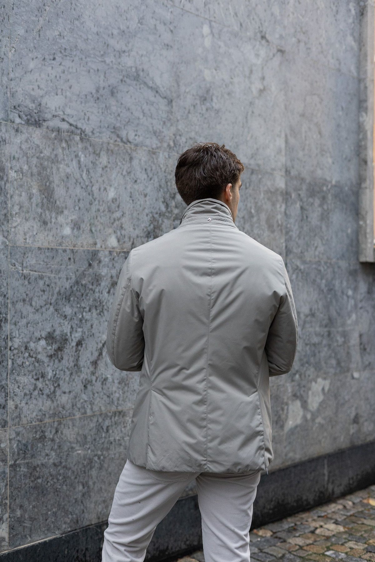 En beige, konfeksjonert jakke fra Montecore som kombinerer eleganse og funksjon. Jakken er laget i et vind- og vannavstøtende materiale som beskytter mot skiftende vær, samtidig som den har en lett og slim passform. Den avtakbare vindstopperen gir ekstra varme og fleksibilitet. En tidløs og allsidig jakke som passer perfekt både til hverdags og mer pyntet anledninger.