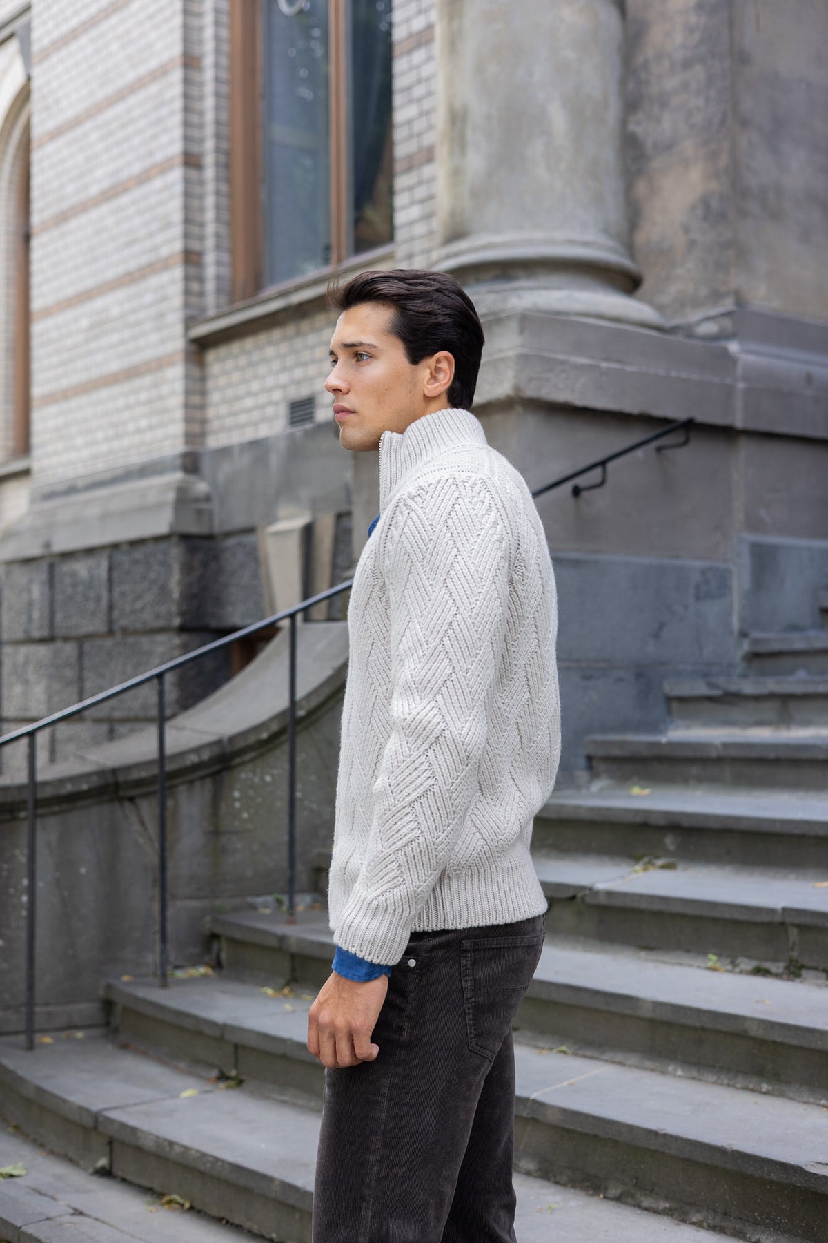 Denne cardiganen fra italienske Gran Sasso er et mesterverk i strikket eleganse, laget i 100% ren chasmere - et luksuriøst naturmaterialer kjent for sin eksepsjonelle mykhet, varme og lette følelse. Med sin delikate og elegante flettestrikk gir cardiganen et sofistikert og strukturert uttrykk, samtidig som den ivaretar en tidløs og allsidig stil som passer enhver anledning.