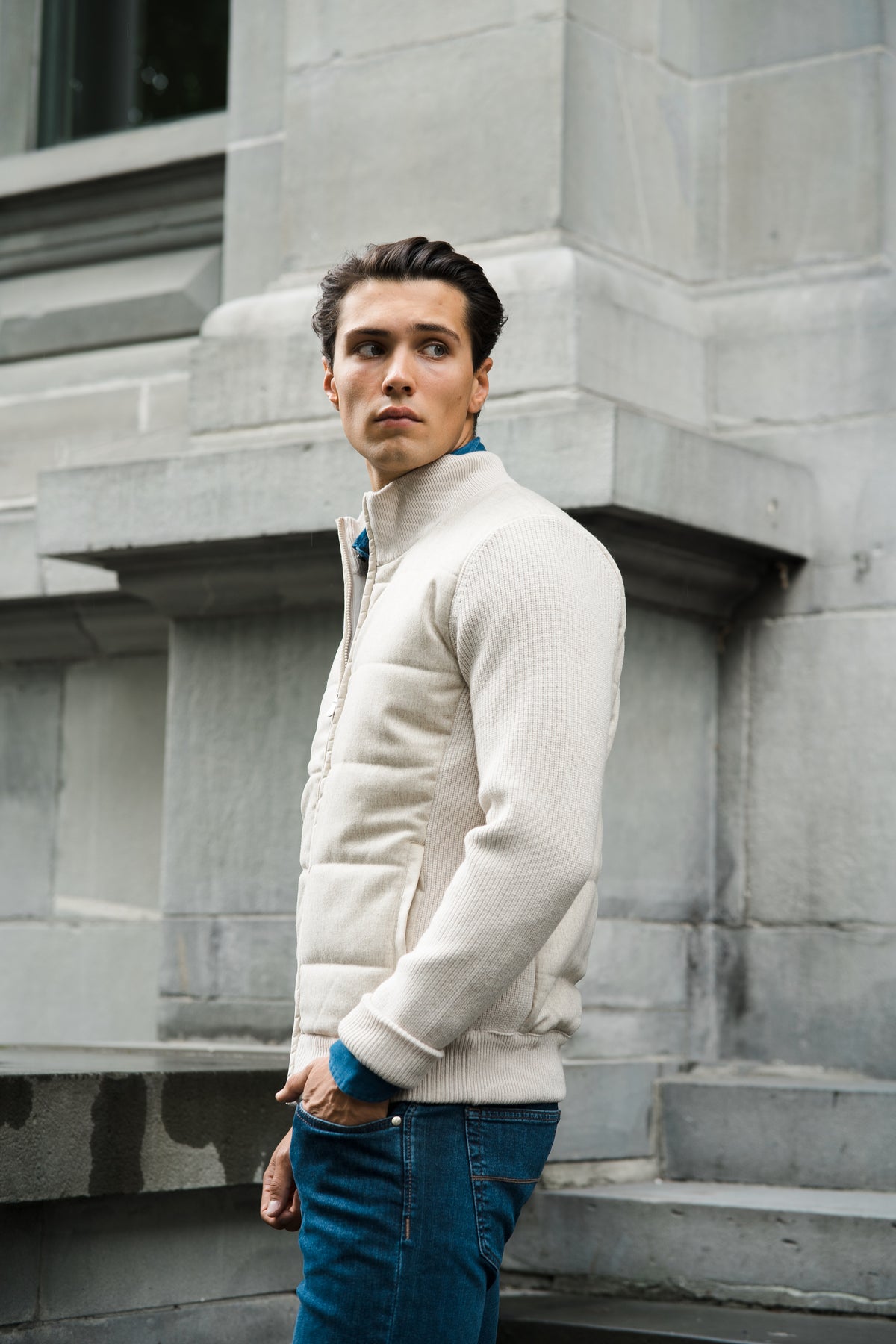 En stilren jakke fra Gran Sasso, strikket i myk og varm ull. Genseren er designet med elegante alcantara-detaljer ved glidelås, som gir et moderne og eksklusivt preg. Ribbestrikkede kanter gir god passform og komfort, og den klassiske fasongen gjør plagget enkelt å kombinere med både skjorte og bukser til en allsidig hverdagsstil. Et raffinert basisplagg som kombinerer italiensk håndverk med funksjonell eleganse.