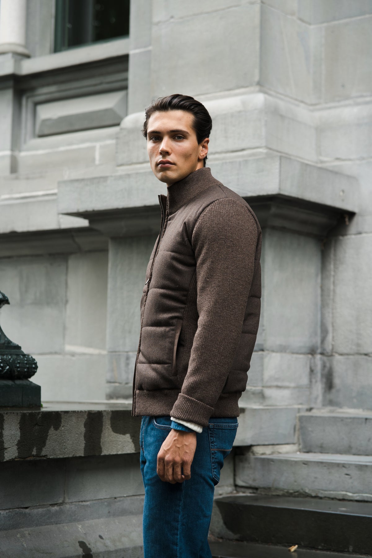 En stilren jakke fra Gran Sasso, strikket i myk og varm ull. Genseren er designet med elegante alcantara-detaljer ved glidelås, som gir et moderne og eksklusivt preg. Ribbestrikkede kanter gir god passform og komfort, og den klassiske fasongen gjør plagget enkelt å kombinere med både skjorte og bukser til en allsidig hverdagsstil. Et raffinert basisplagg som kombinerer italiensk håndverk med funksjonell eleganse.