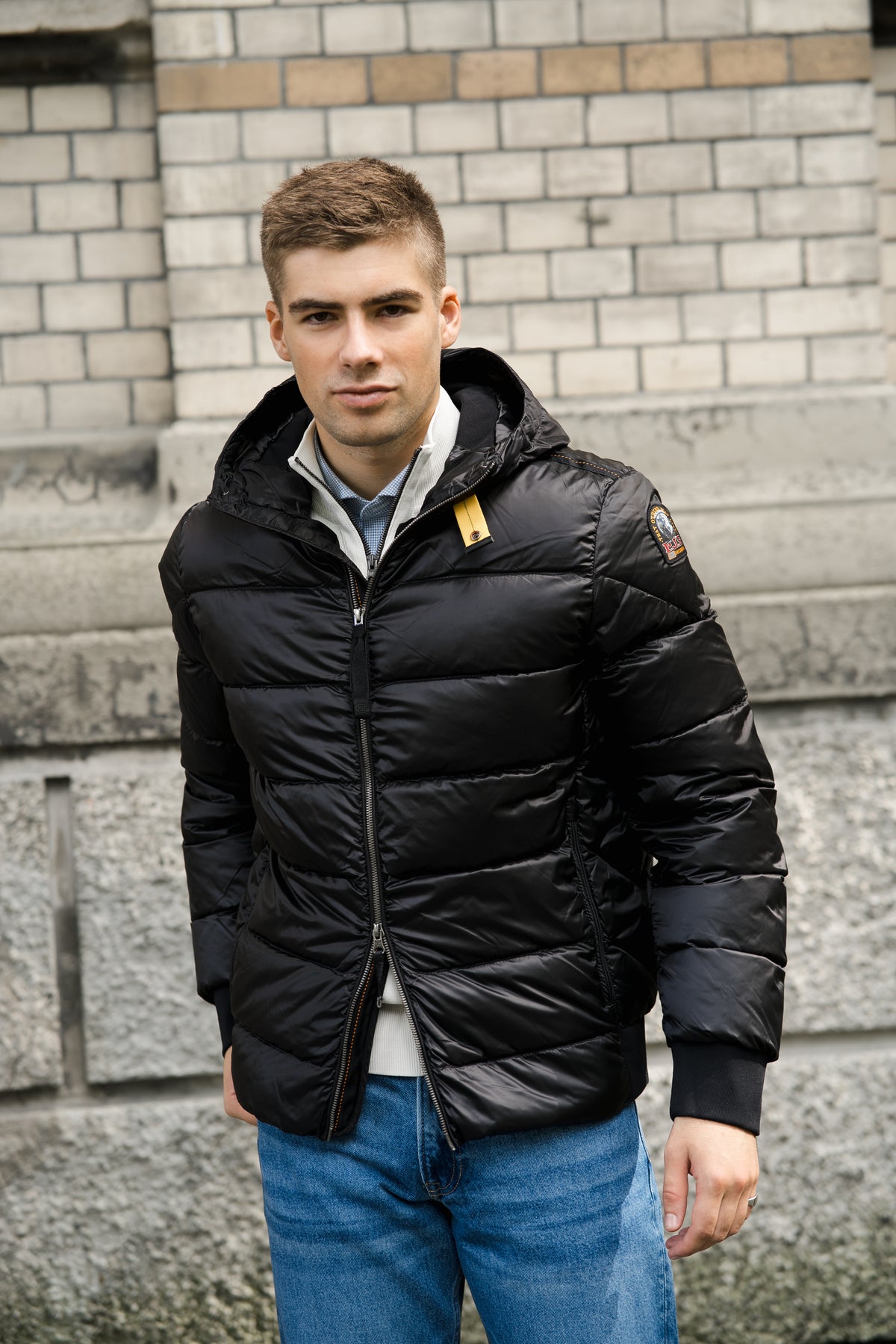 Pharrell fra Parajumpers. En dunfylt jakke med hette, som er laget av polyester-nylon twill med en skinnende finish og et minimalistisk design som gjør den til et uunnværlig plagg i garderoben. Jakken kombinerer funksjonalitet og stil, med praktiske detaljer som underarmsventilasjon, ribbestrikkede avslutninger og flere lommer. Den ikoniske gule remmen ved halsen og Parajumpers-patchen på ermet setter prikken over i-en.