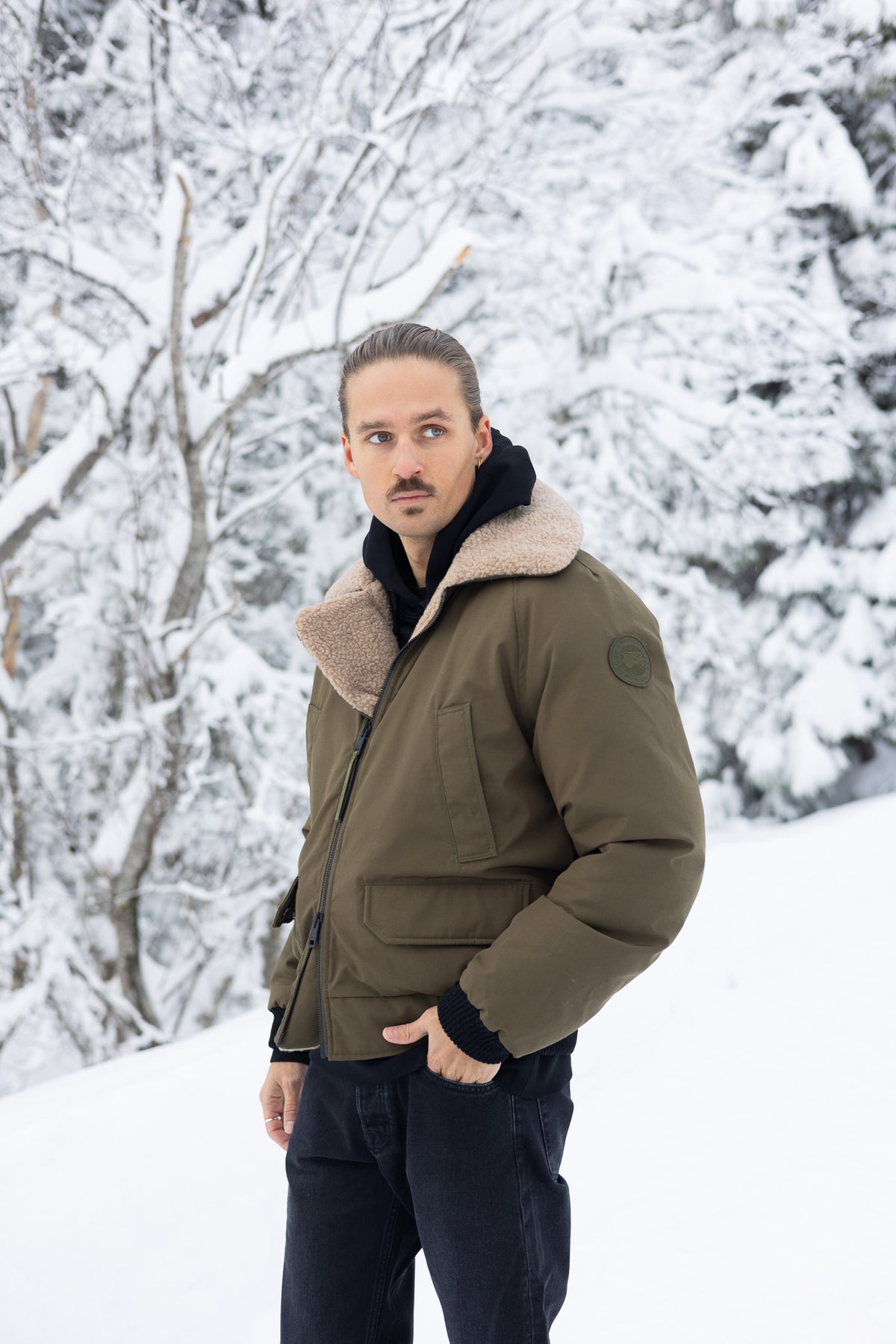 En ikonisk bomberjakke med inspirasjon fra den klassiske 2004 Air Force Parka. Jakken har en funksjonell fleecekrage, raglanermer, ribbestrikk nederst og ved mansjettene, og glidelås med toveis åpning som gjør den praktisk i bruk. Med slitesterkt skall i teknisk vev og god isolasjon er denne jakken laget for å beskytte mot kaldt vær samtidig som den gir et stilrent uttrykk.