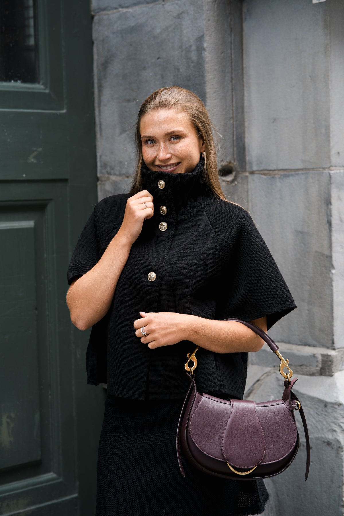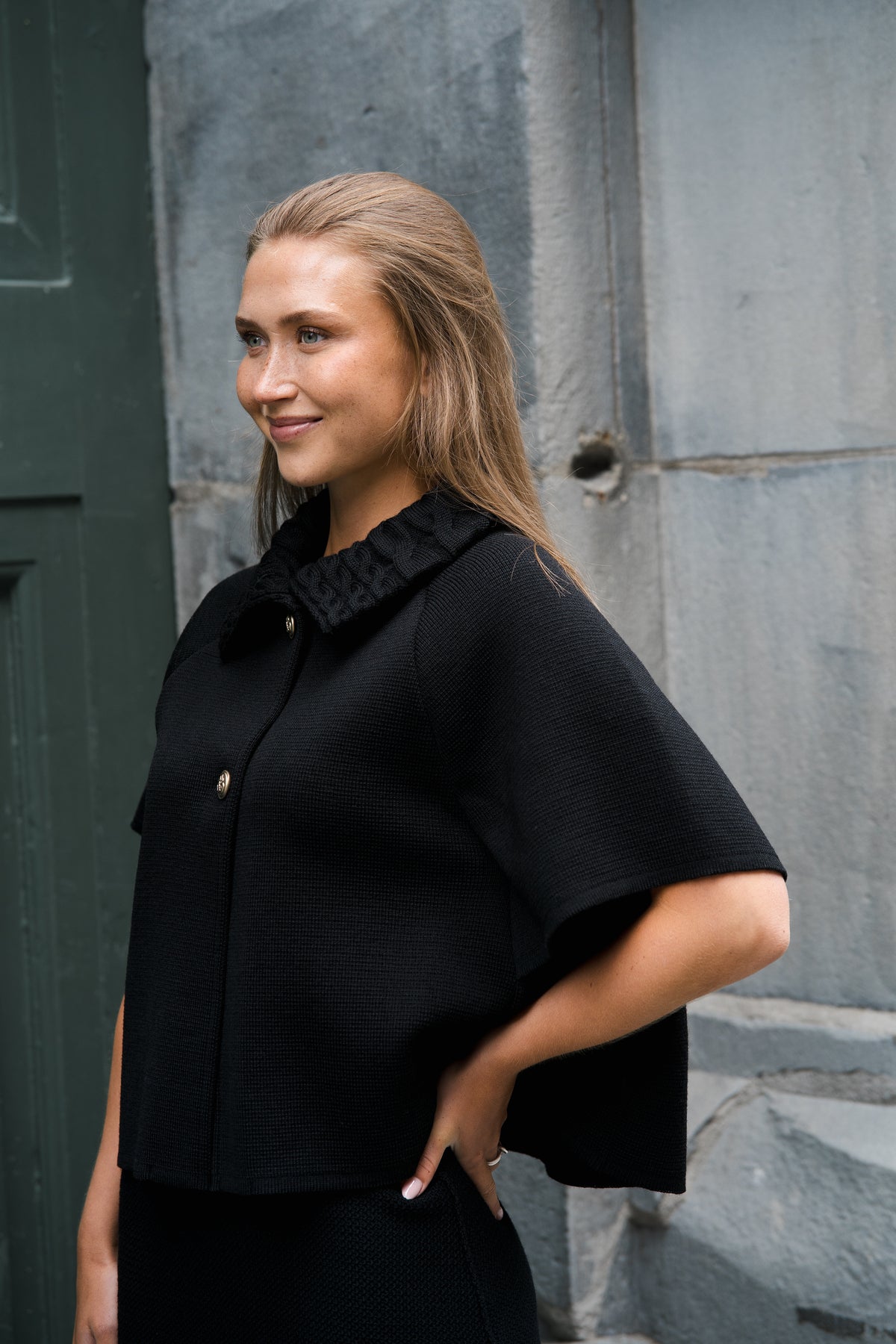 LISALOU CABLEKNIT COLLAR CAPE BLACK