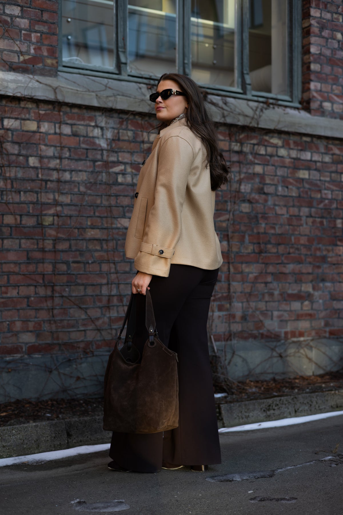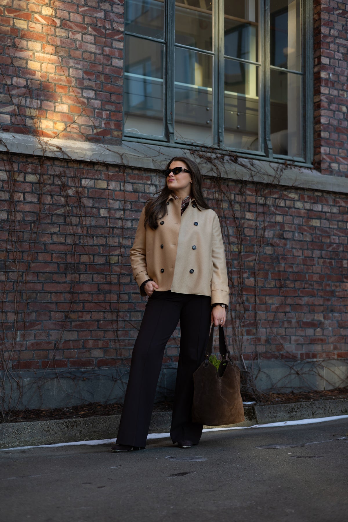 Women oversized short trench light pressed wool er en moderne tolkning av den klassiske trenchcoaten fra Harris Wharf London, designet med et avslappet uttrykk og rene linjer. Jakken er laget i 100% ull, som gjør den optimal til både vår og høst. Den lette, pressede ullkvaliteten gir struktur uten å føles tung, og gjør modellen ideell som overgangsjakke. Style den over en strikkegenser og jeans for et avslappet uttrykk, eller bruk den med dressbukser og loafers for en mer polert look. Et tidløst ytterplagg som løfter garderoben sesong etter sesong.