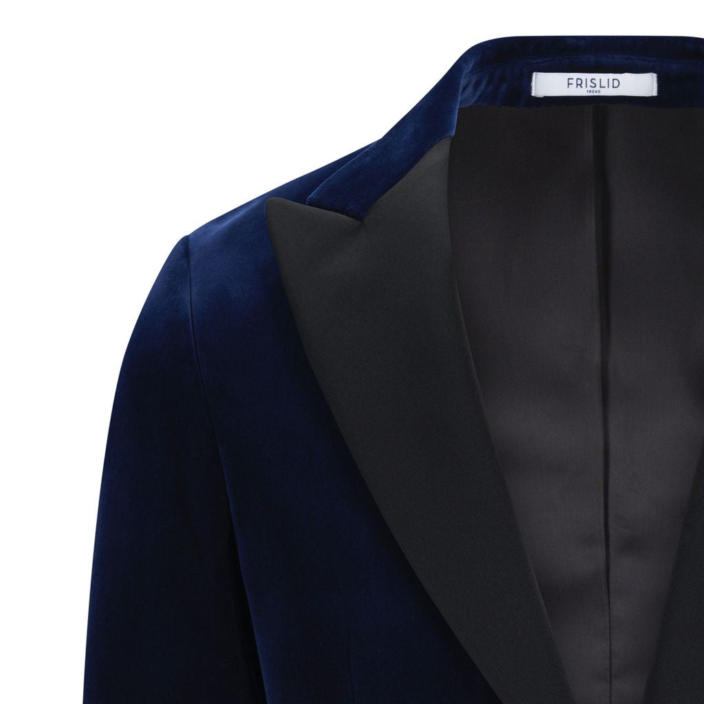 En elegant velurjakke fra Frislid med spisse slag og et sofistikert uttrykk. Jakken kombinerer klassisk snitt med en luksuriøs tekstur, perfekt for deg som ønsker å løfte kveldens antrekk. Bruk den som et stilig alternativ til den tradisjonelle smokingen for en moderne og raffinert look.