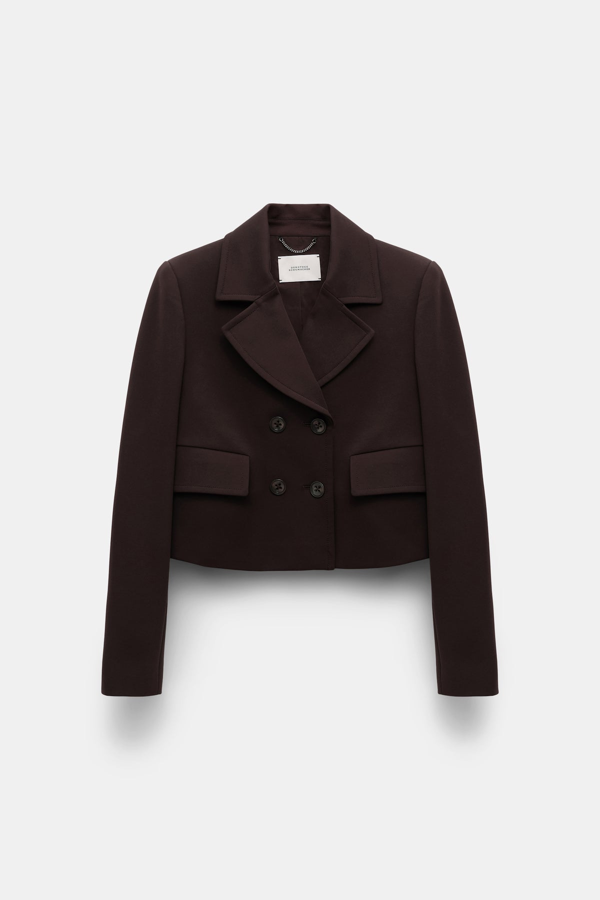 Denne cropped blazeren i Punto Milano gir et moderne og velkledd uttrykk. Blazeren har en boxy passform som gir et avslappet, men gjennomført preg, samtidig som Punto Milano-kvaliteten tilfører struktur og komfort. Det dobbeltspente designet understrekes av elegante knapper i front, mens klaffelommene gir et klassisk og balansert uttrykk. Den cropped lengden gjør jakken enkel å style både høytlivet bukser, skjørt og kjoler, og den fungerer perfekt sammen med tilhørende bukser for et komplett og moderne dressuttrykk. Like fin alene som del av et sett, og et sikkert valg for både jobb og mer pyntede anledninger.