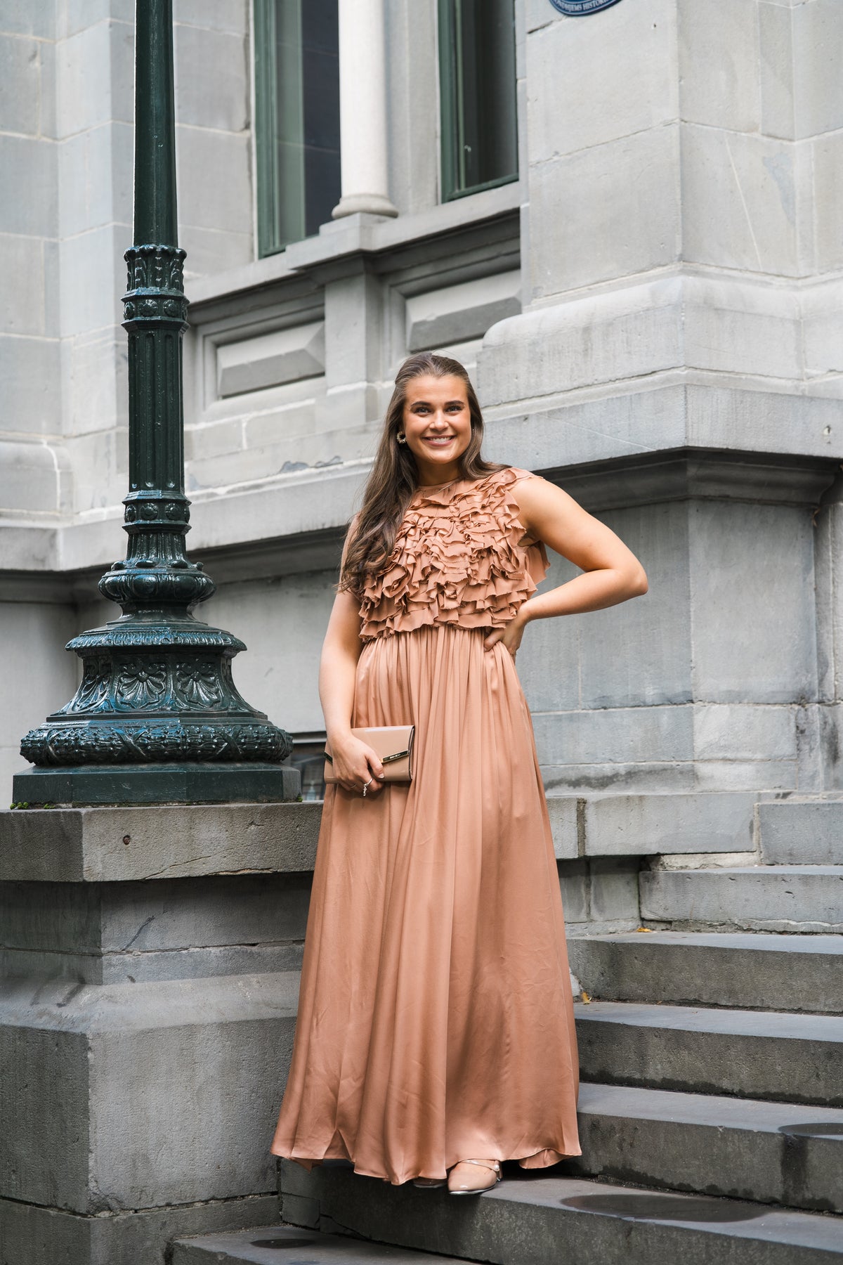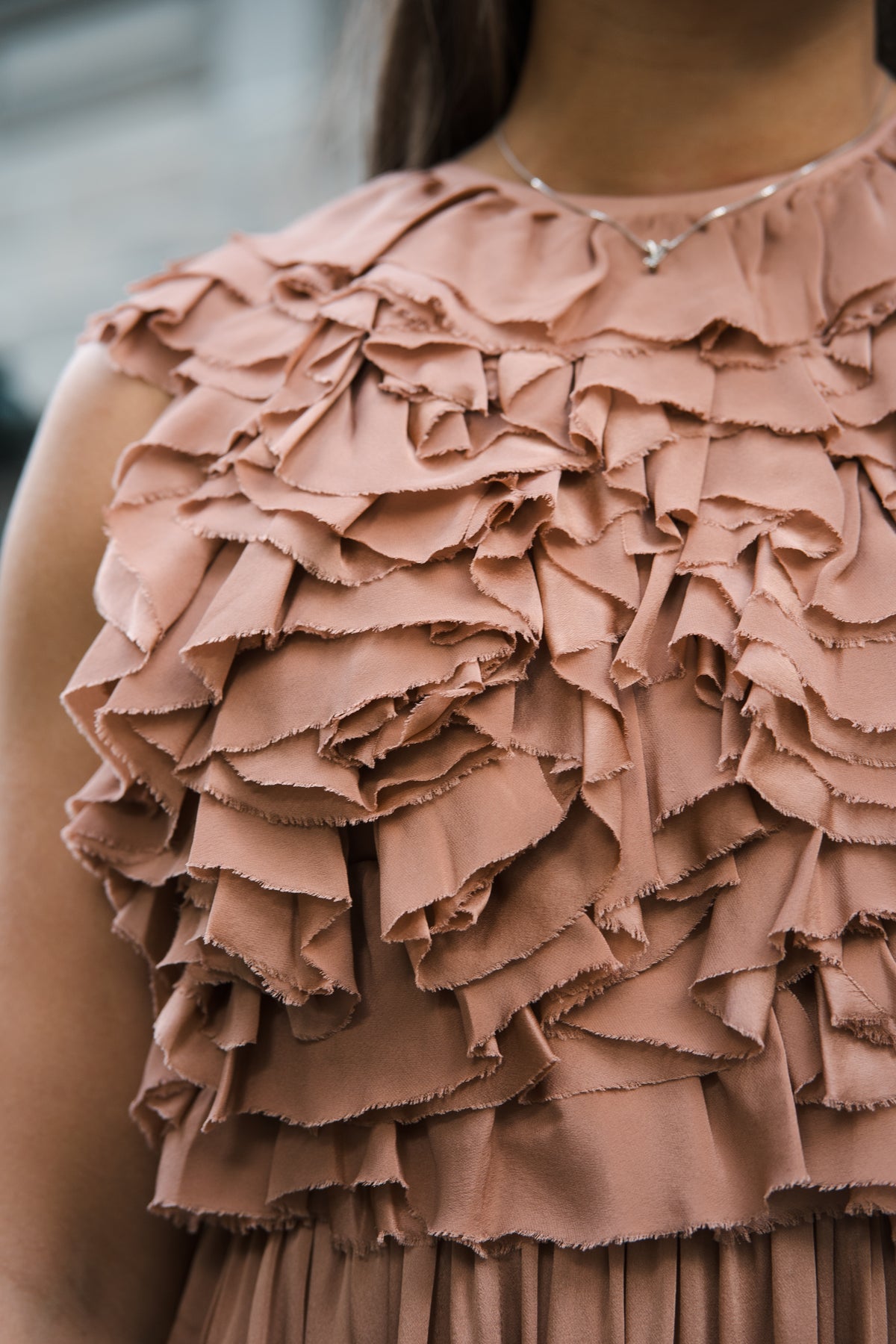 Byzantine Silk Backless Gown fra Ulla Johnson. En elegant kjole som er kutet av satengbelagt silkechiffon, et raffinert og luftig materiale som flagrer med hvert steg. Med en subtil glans er denne dusty pink kjolen nøye konstruert med rysjer på overdelen, og med et elegant skjørt. Kjolen har en tettsittende overdel foran, med åpen rygg, ermeløs og sidelommer.