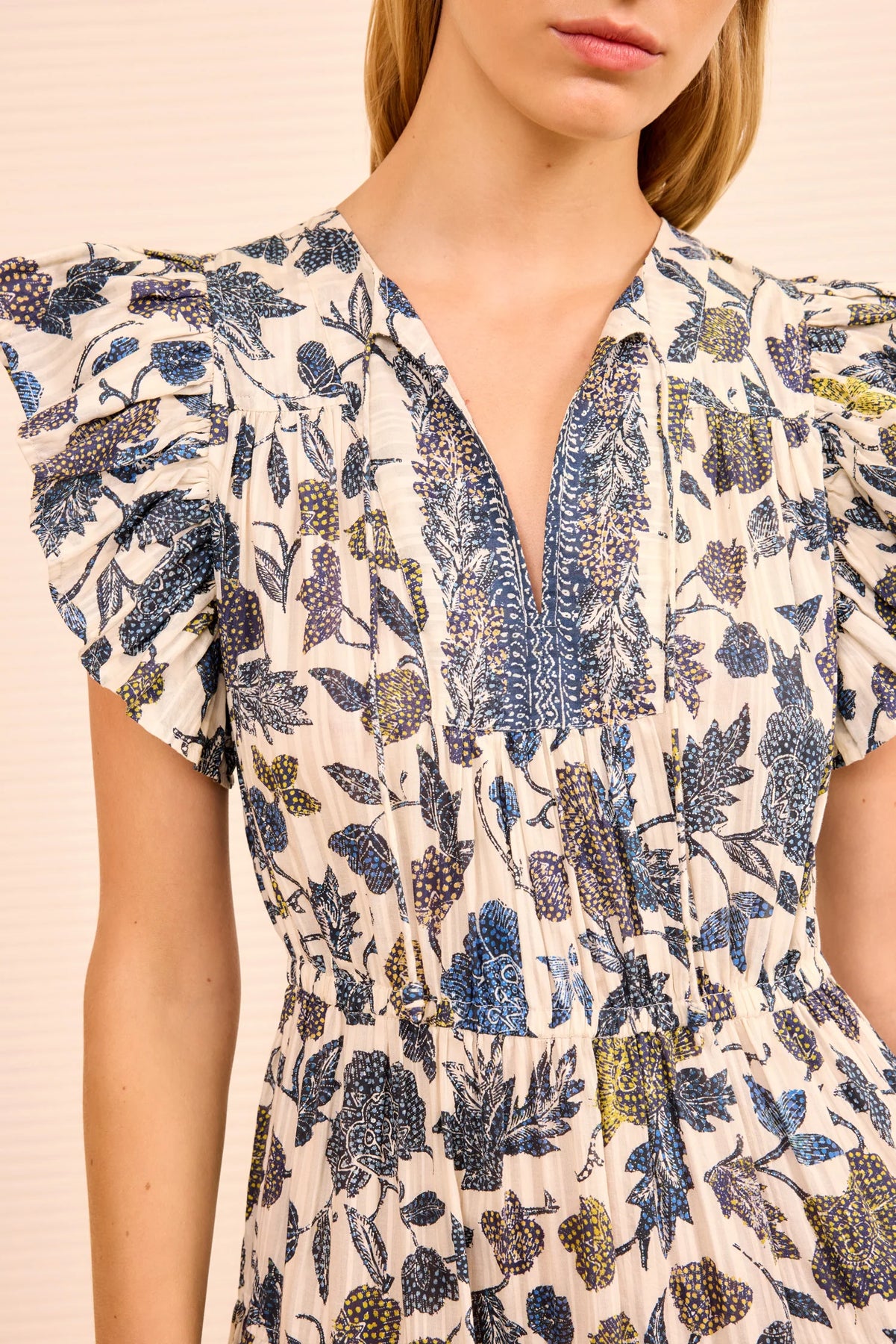 Kairi Flutter Sleeve Midi Dress er en lett og deilig kjole laget i bomull og viskose. Kjolen har en V-hals, liten skulder, strikk i midjen for optimal komfort og en midilengde. Den er like fin å bruke med sneakers, sandaler som til høye hæler til finere anledninger.