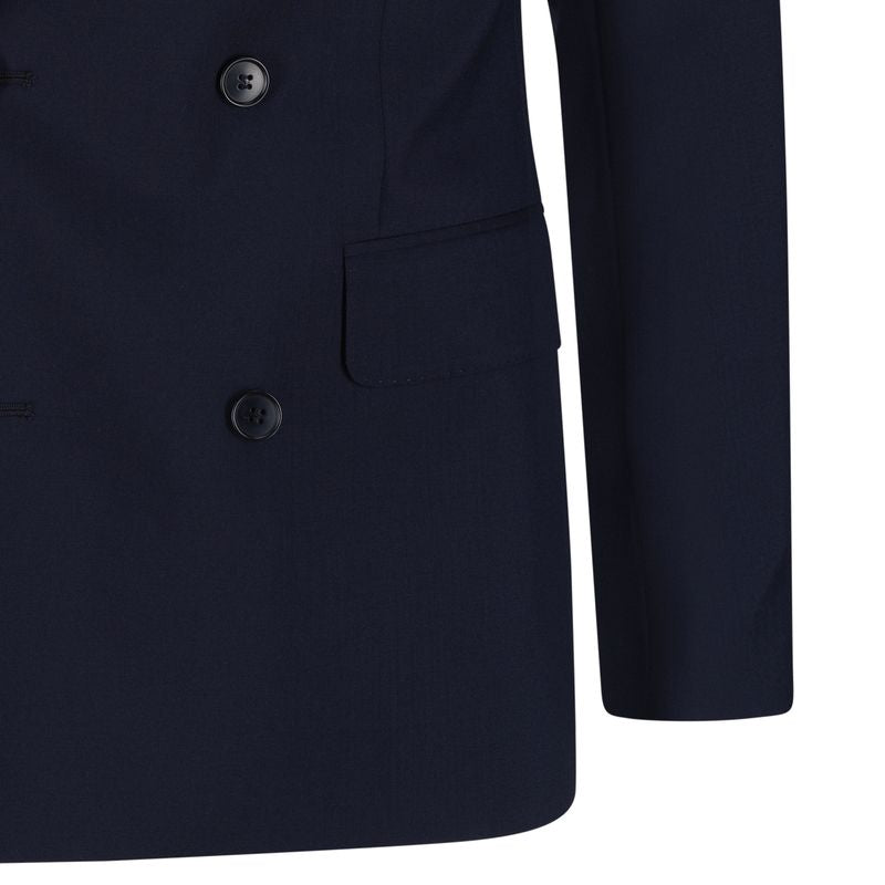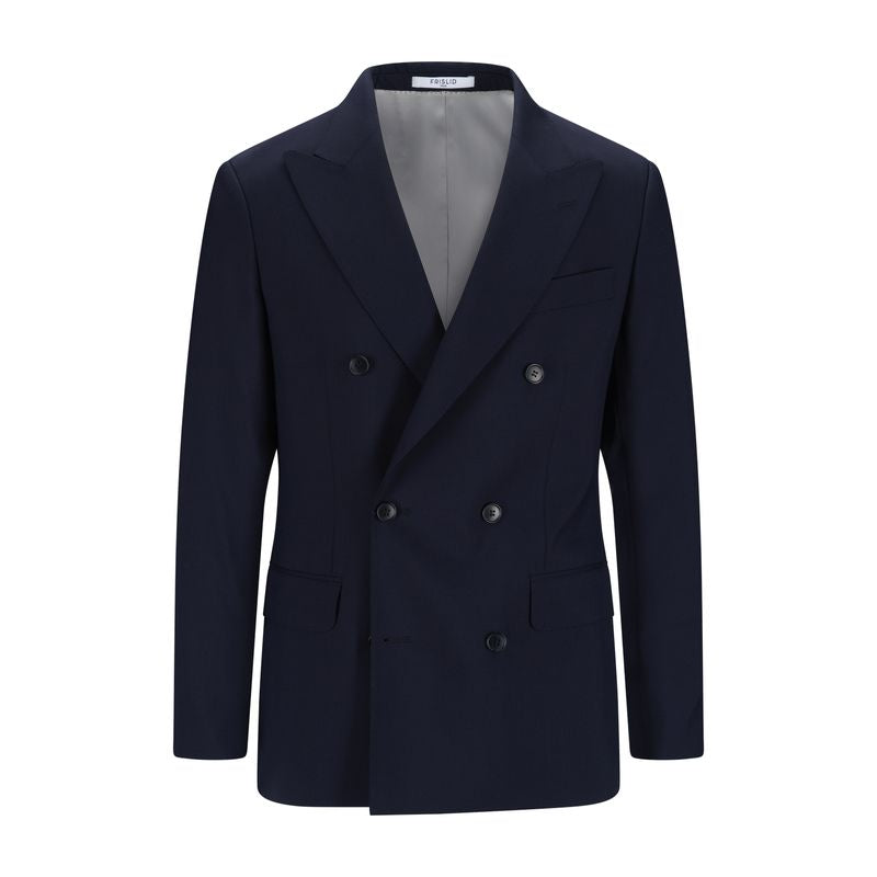 En klassisk navy dobbeltspent dressjakke i 100% ull fra Frislid. Jakken har et tidløst snitt og elegante linjer som gir et sofistikert uttrykk både på jobb og til formelle anledninger. Kombiner med den tilhørende dressbuksen for en komplett dress.