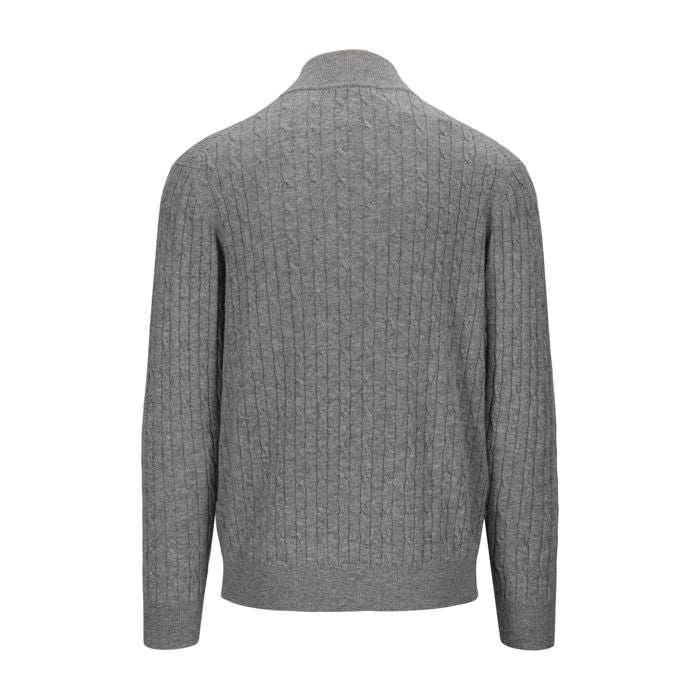 En moderne half-zip genser fra Frislid, strikket i myk ullblanding for komfort og varme. Genseren har stående krage med glidelås og ribbestrikkede kanter som gir en behagelig passform. Kontrastfargede detaljer ved glidelåsen og kragen tilfører et stilfullt preg. Et allsidig plagg som passer like godt over skjorte på jobb som til en mer avslappet stil i hverdagen.