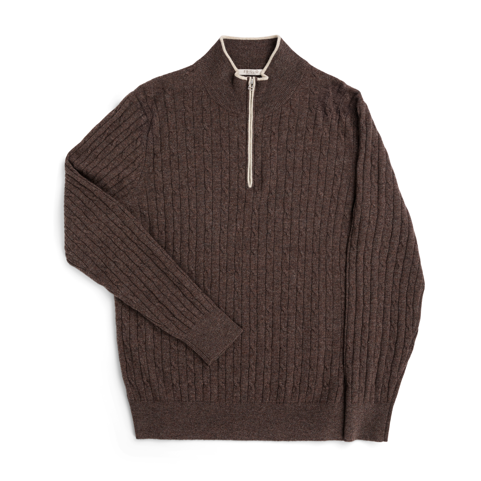 En moderne half-zip genser fra Frislid, strikket i myk ullblanding for komfort og varme. Genseren har stående krage med glidelås og ribbestrikkede kanter som gir en behagelig passform. Kontrastfargede detaljer ved glidelåsen og kragen tilfører et stilfullt preg. Et allsidig plagg som passer like godt over skjorte på jobb som til en mer avslappet stil i hverdagen.