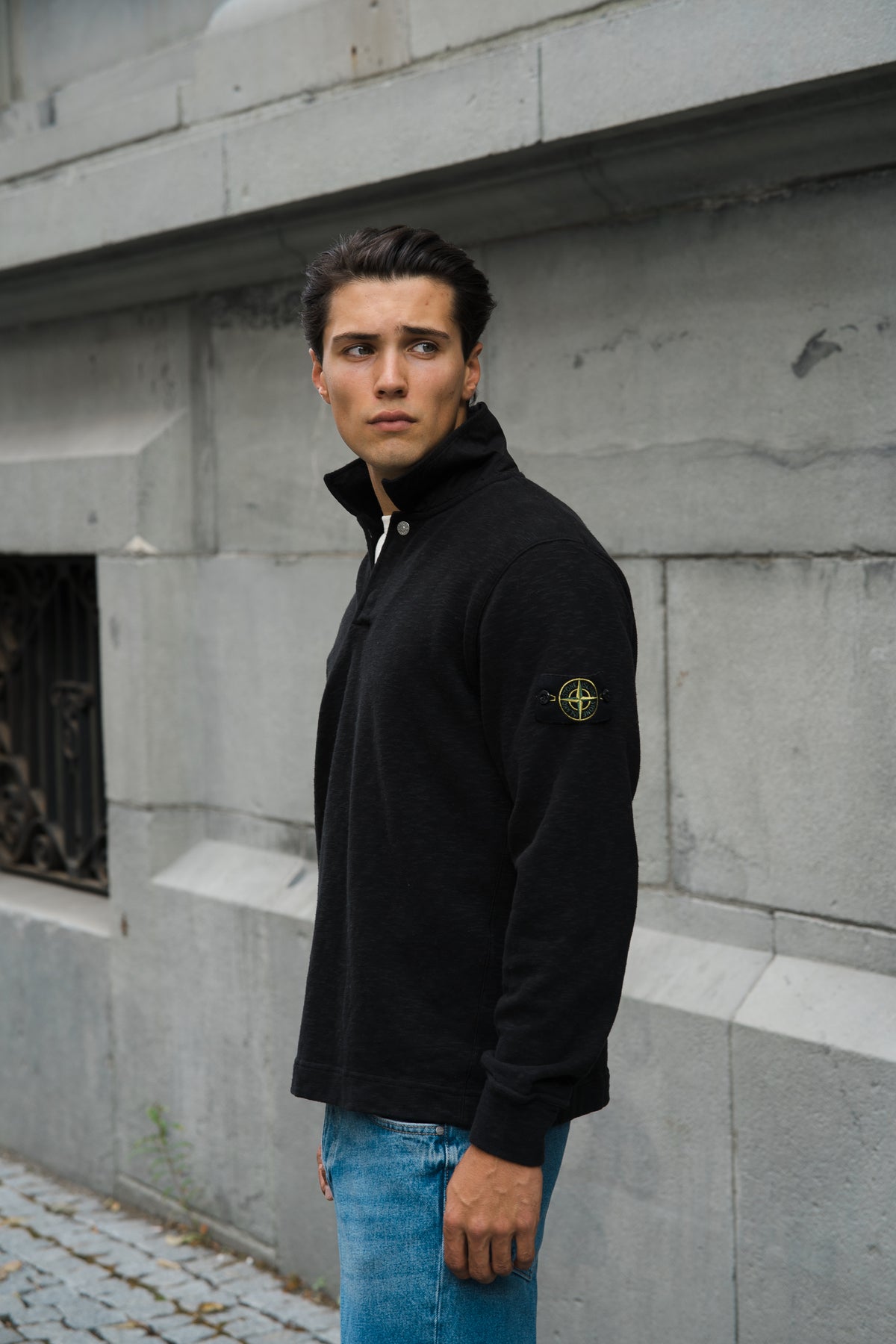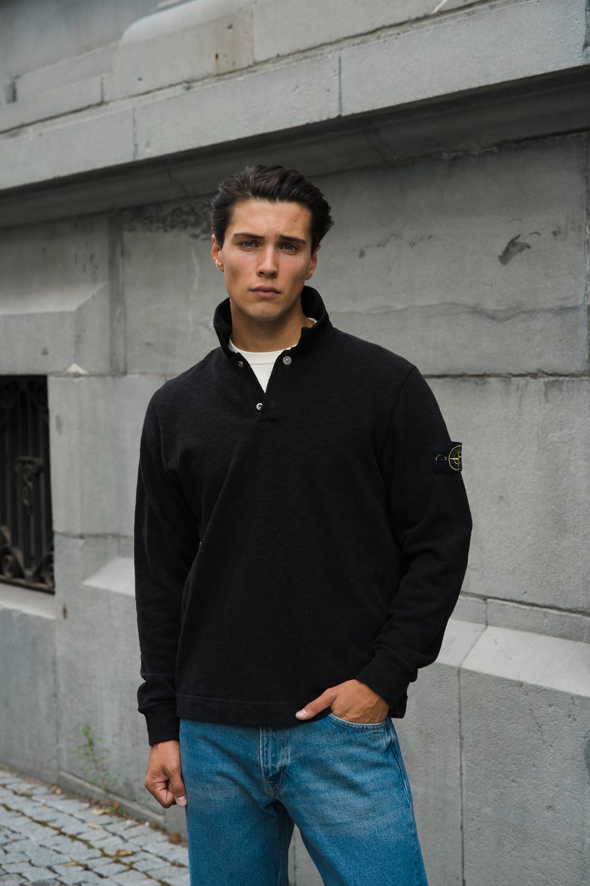 LS Polo fra Stone Island. En allsidig og tidløs pologenser i bomullsjersey, genseren har en skjortekrage med halsfeste med to trykknapper, en synlig og en skjult. Genseren har også Stone Island-merke på venstre erme, og har en normal passform som gjør den perfekt til hverdagsbruk.