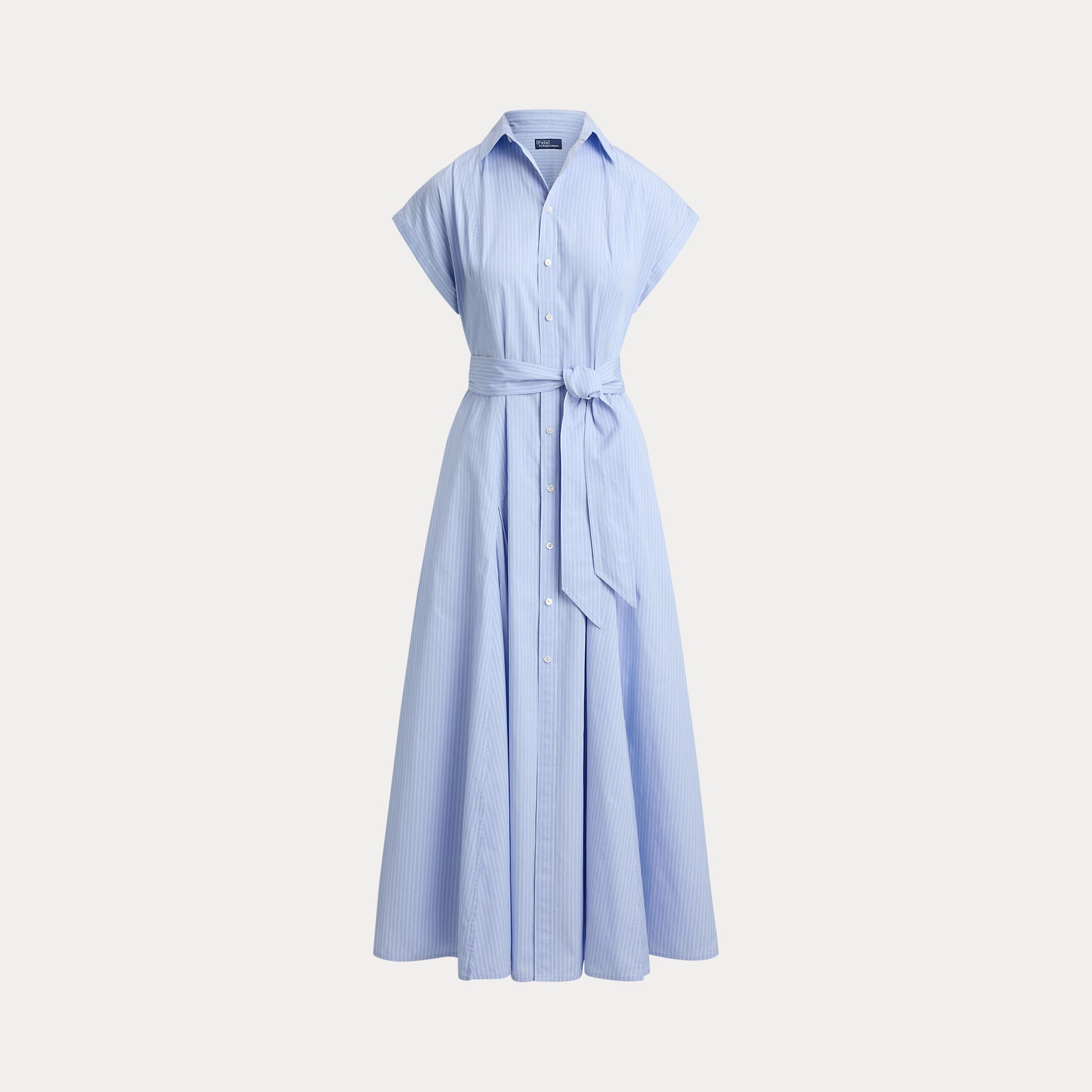 Kjolen er laget i garnfarget bomull som gir klare, varige striper og en behagelig følelse mot huden. Overdelen har korte ermer, spiss krage og knappestol i front, som gir et klassisk og velkledd uttrykk. Det A-linjeformede skjørtet faller pent fra livet og er dekorert med inverterte legg som tilfører volum og bevegelse. Et matchende knytebelte i midjen fremhever figuren og gjør det enkelt å justere passformen etter ønske. Bruk den med sandaler for et avslappet sommerantrekk, eller style med loafers eller sneakers for en mer hverdagslig, men gjennomført look.