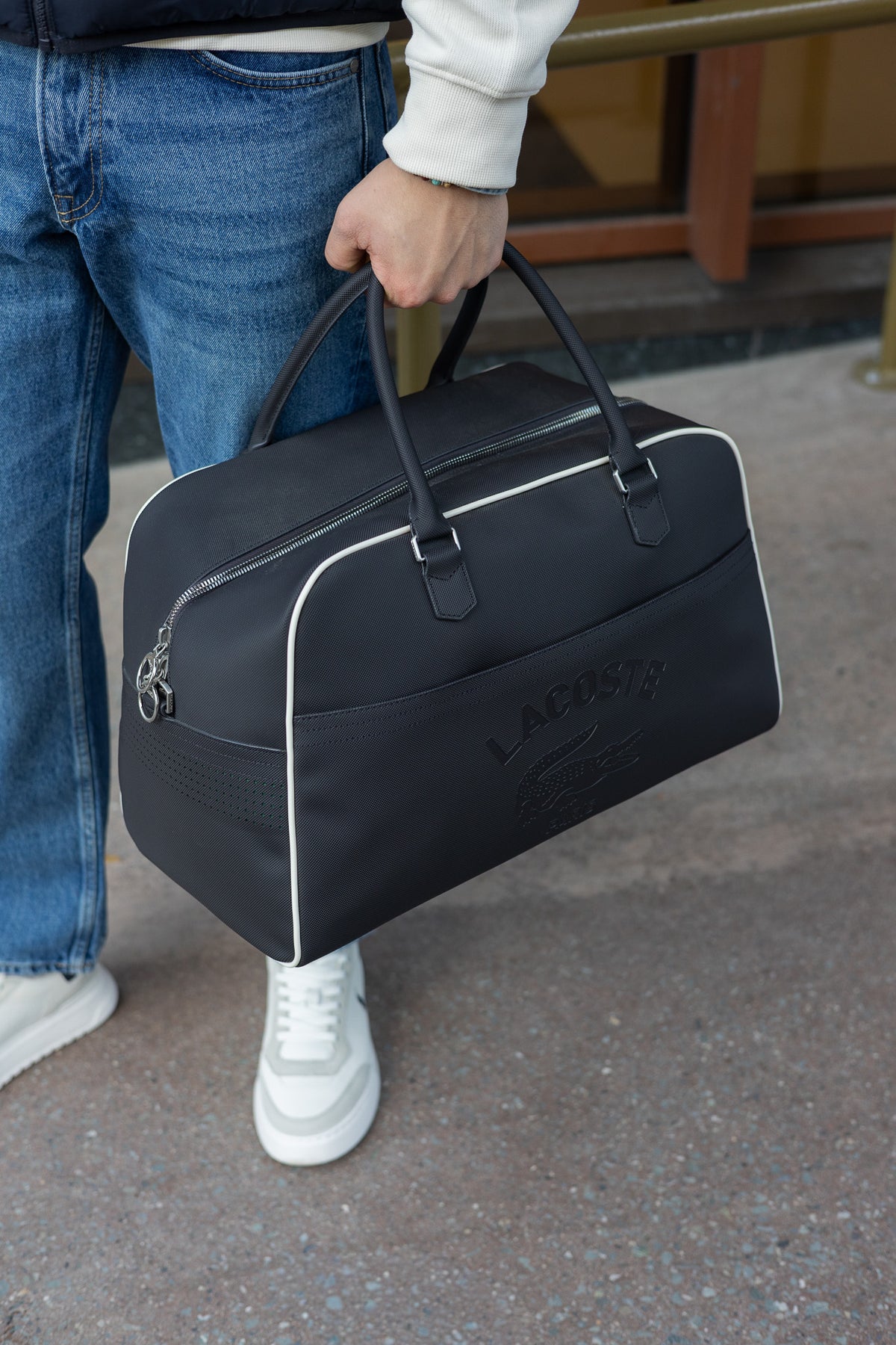 En sporty og funksjonell duffelbag fra Lacoste, perfekt til både trening og helgeturer. Laget i slitesterkt materiale med god plass til det du trenger, samt praktiske inner- og ytterlommer for organisering. Med et volum på 30 liter har den ideell størrelse for korte turer eller hverdagsbruk. Fullført med Lacoste-logoen som gir et stilrent og ikonisk uttrykk.