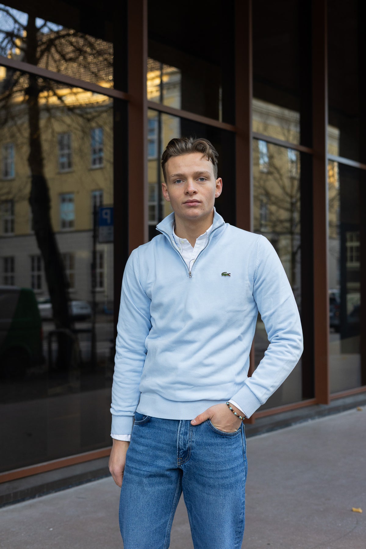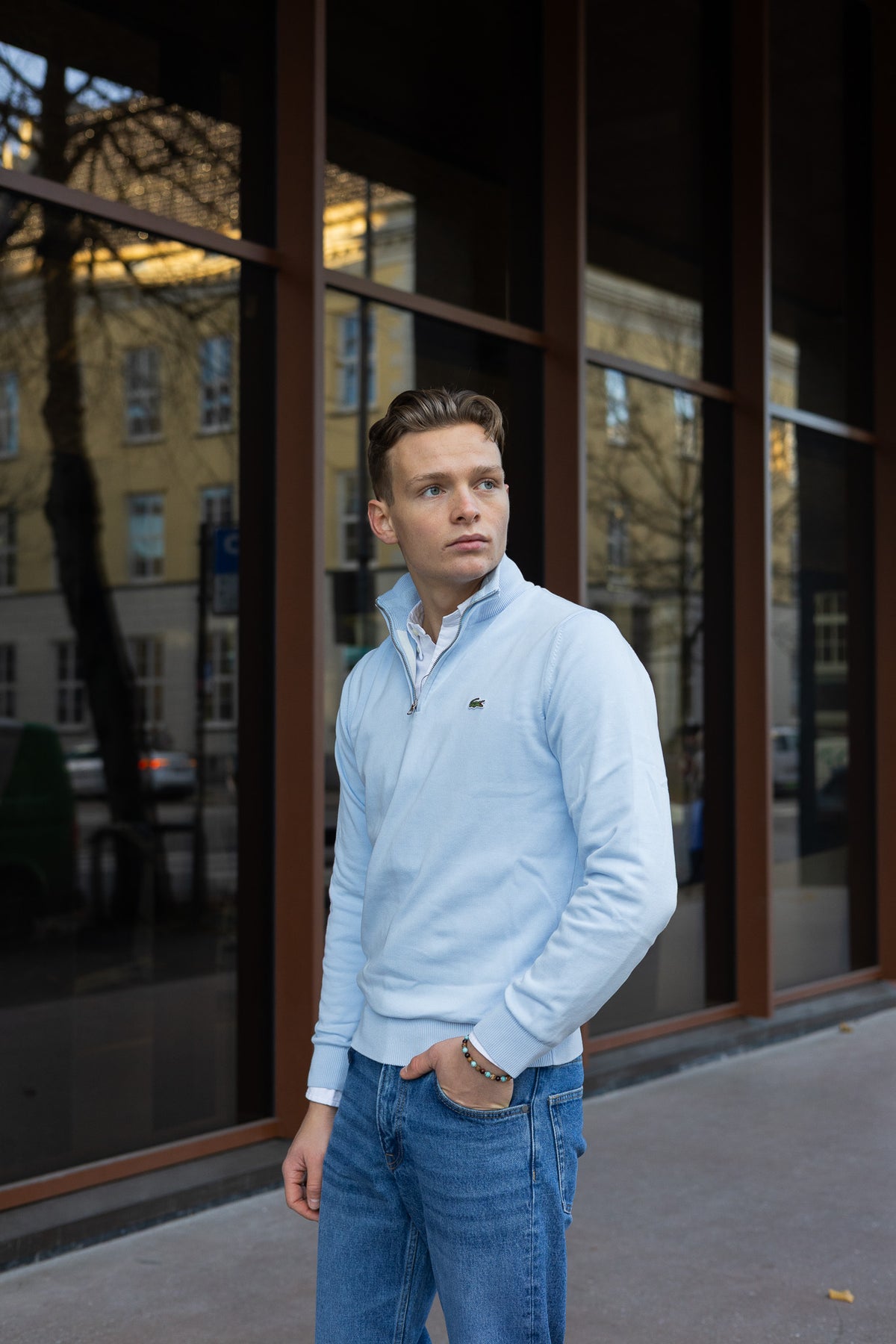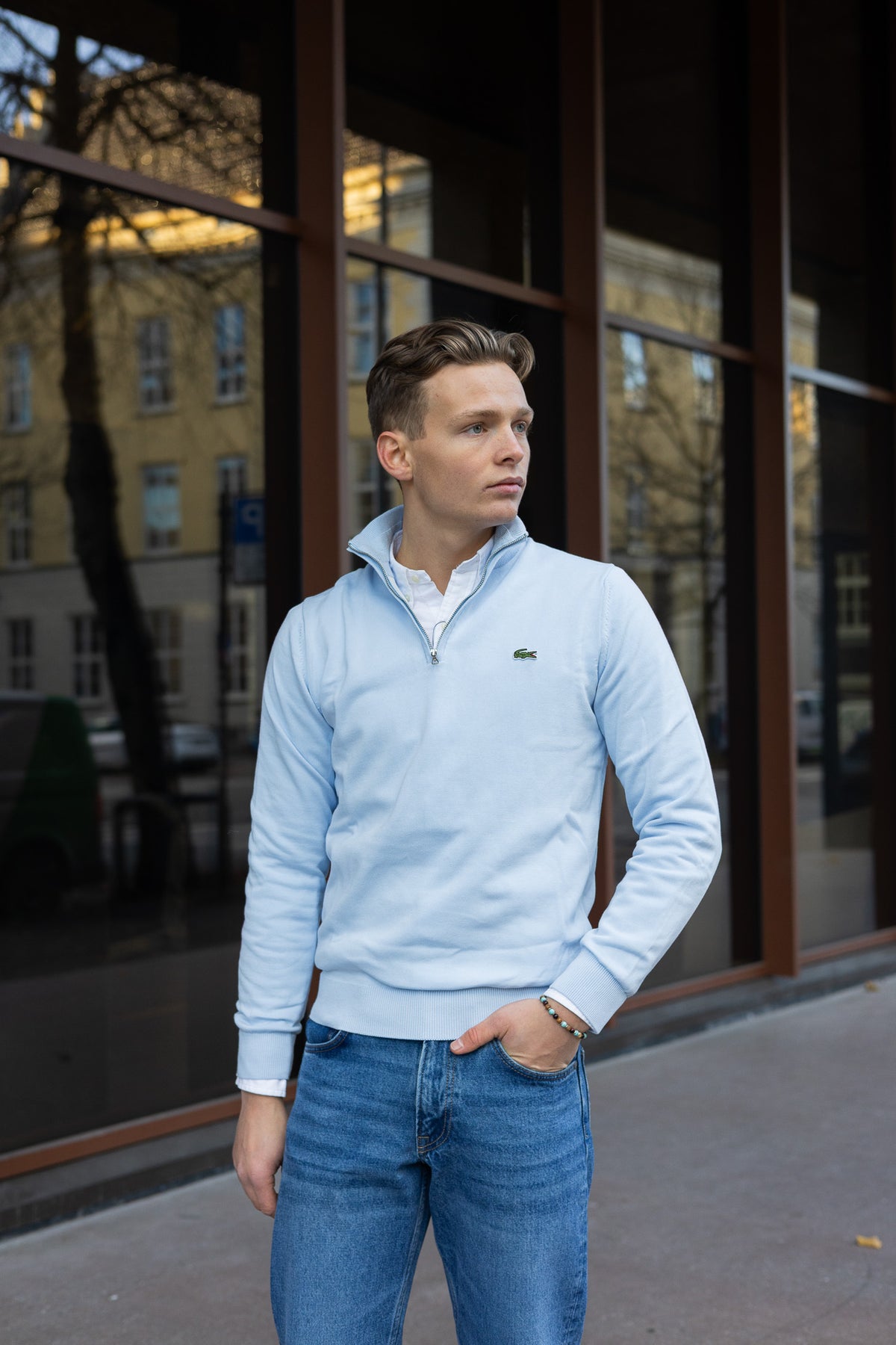 En klassisk quarter zip-genser fra Lacoste, laget i myk bomull for maksimal komfort. Genseren har den ikoniske grønne krokodille-logoen brodert på brystet. Et tidløst og sporty plagg som passer perfekt til både hverdags og fritid.