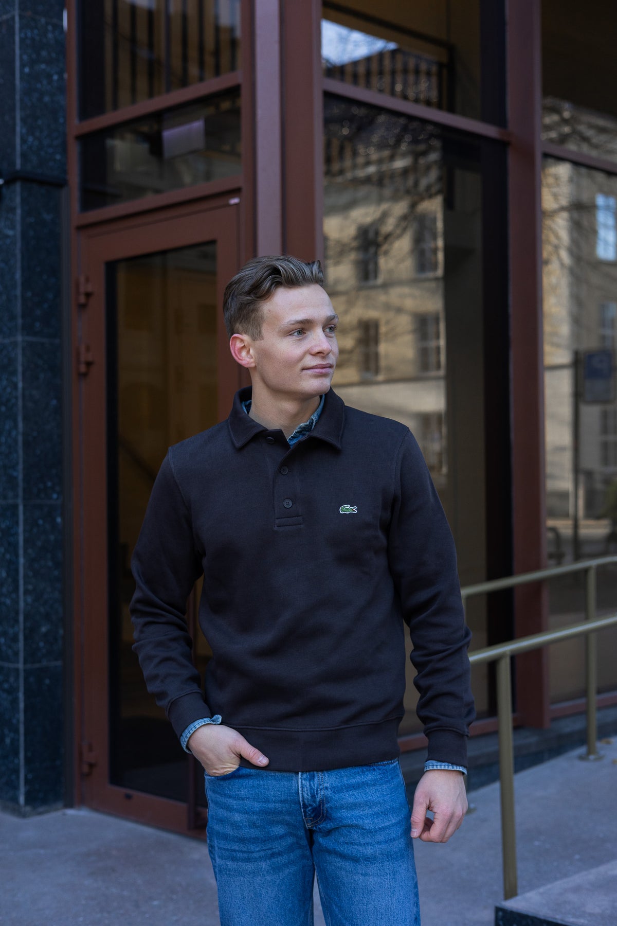 En brun langermet piquégenser laget i en tykkere bomullskvalitet som gir en myk og behagelig følelse. Modellen kombinerer uttrykket til en klassisk piqué med komforten til en genser, perfekt for en avslappet og stilren hverdagslook.