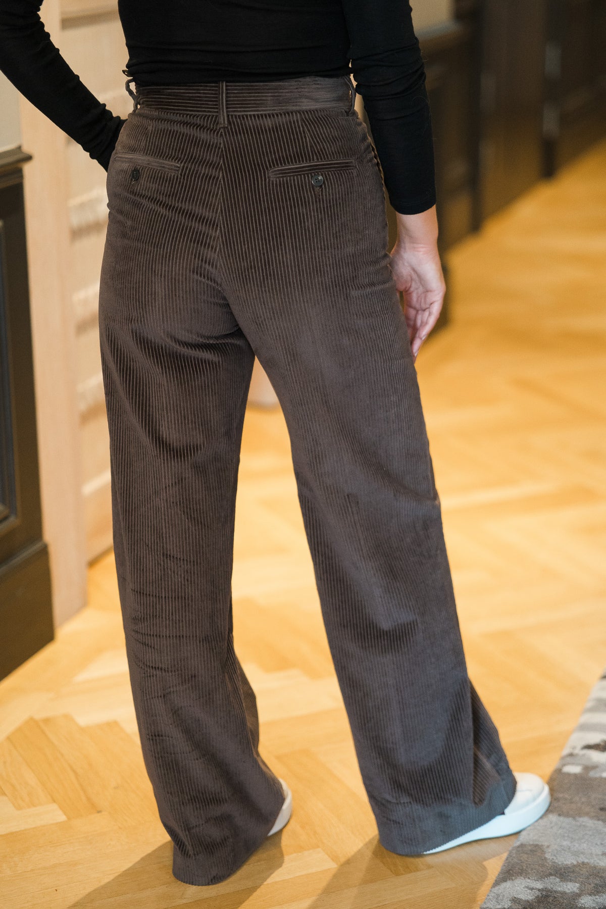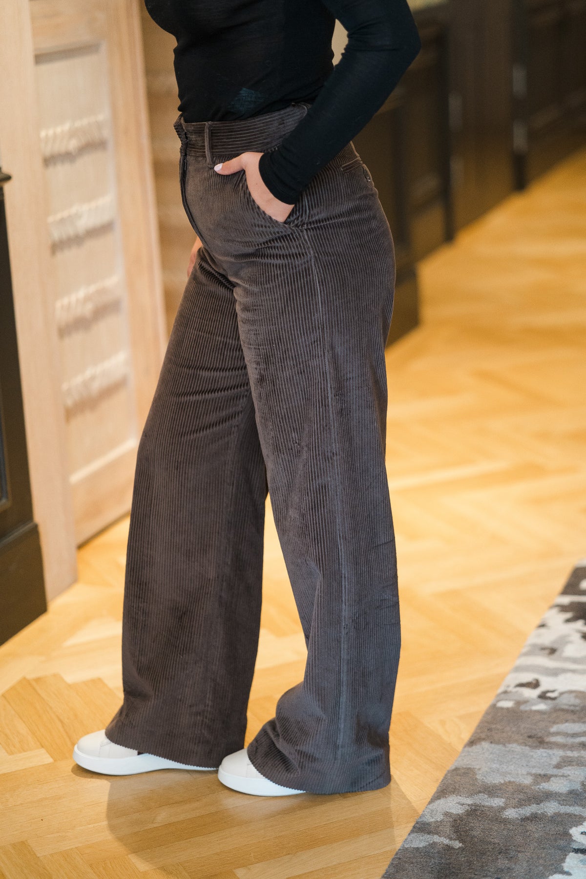 Tania bukse fra Max Mara Weekend. Disse buksene er laget av bomullsfløyel, som gir en behagelig og luksuriøs følelse som er perfekt for enhver anledning. Buksen har en bred passform, høy på livet og lommer på siden.