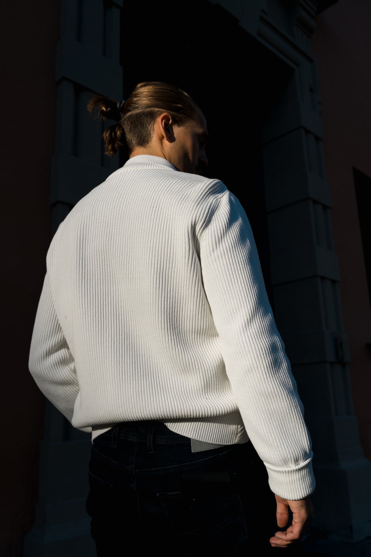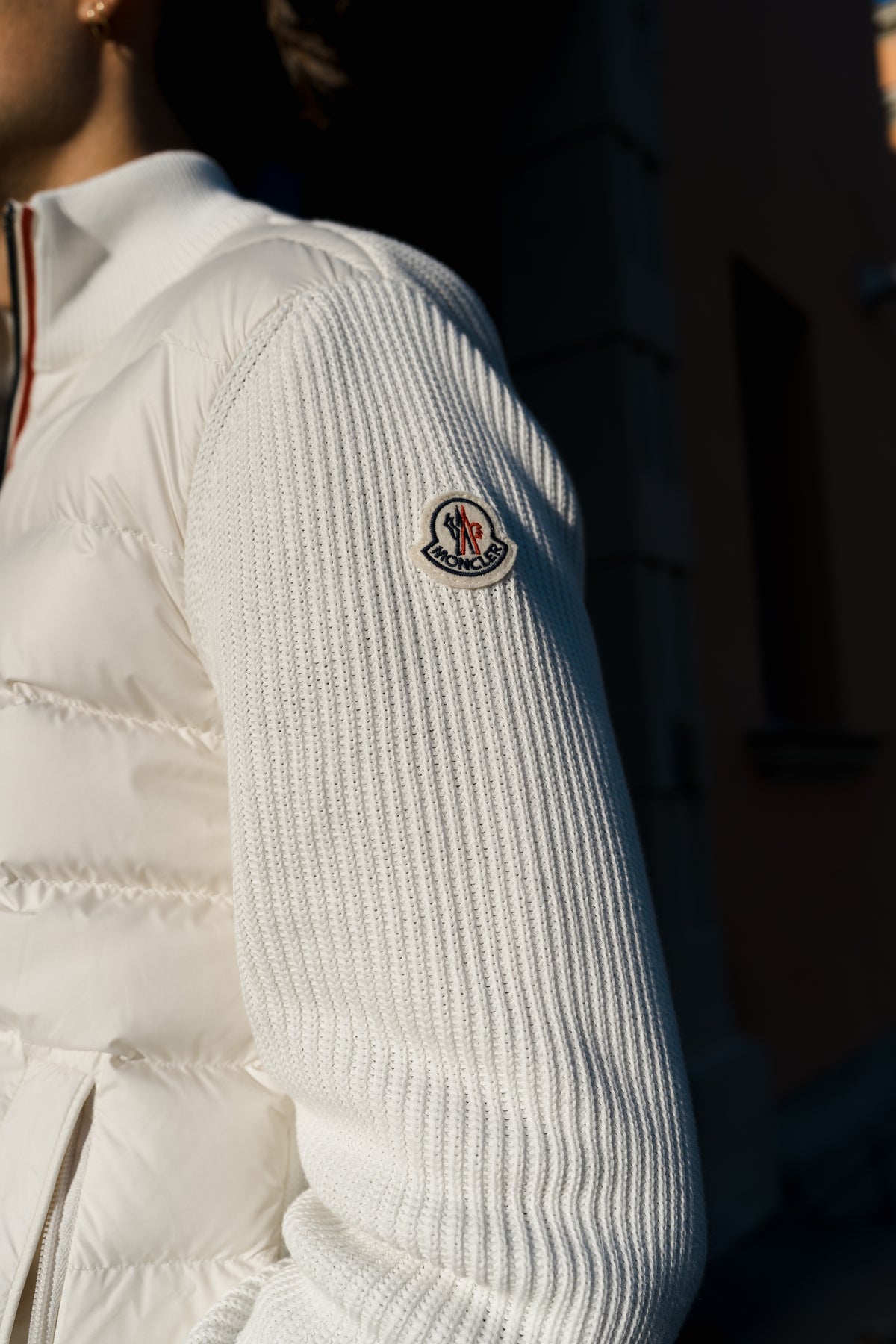 Perfekt for overgangssesongen – denne vatterte cardiganen fungerer både som en lett jakke i mildt vær og som et varmende mellomlag. Den har glidelåslukking og er strikket i myk merinoull, med dunfylte paneler foran for ekstra varme og komfort.