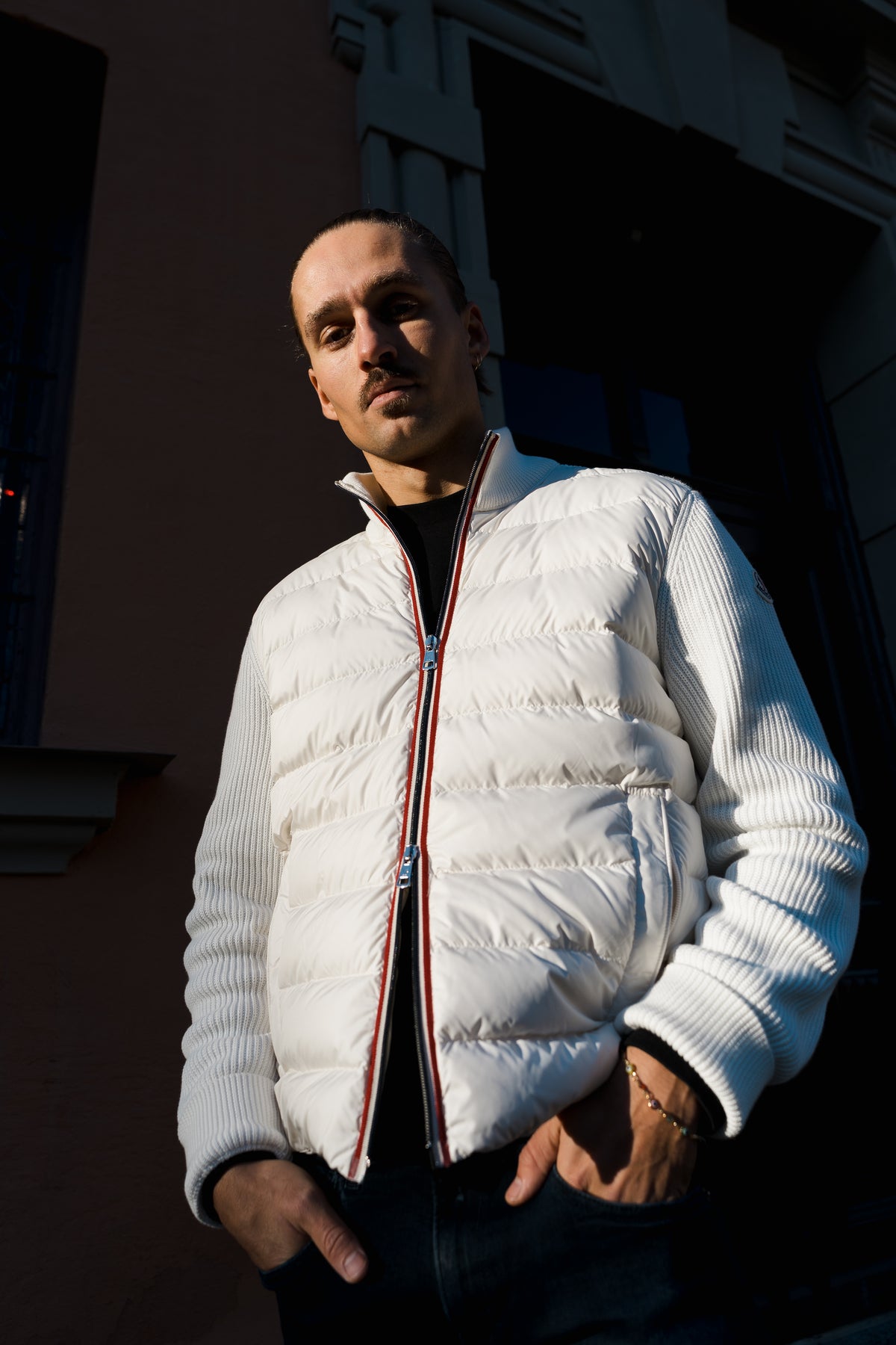 Country of origin: TUNISIA / Matrerial composition: OUTER: 2%ELASTANE + 98% COTTON / / Filling Composition: DOWN 90% + FEATHER 10% / Down color: EXTRA WHITE / Construction: KNIT / Sleeve Type: LONG SLEEVE / Position: / Lining: PARTIAL LINING / Product care: 0 - Do not wash / 0 - Do not bleach / 0 - Do not tumble dry / 1 - Ironing maximum temperature 110°C - without steam / 1 - Dry cleaning with hydrocarbons - mild process / 0 - Do not professionally wet clean / 1 - Flat dry in the shade