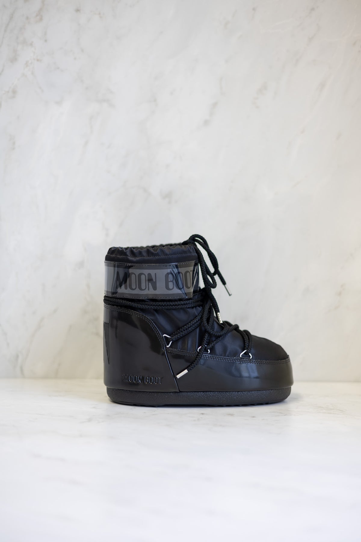 Icon Low Glance fra Moon Boot. Den ikoniske Moon Boots i lav utgave med en glossy finish, snøring og en myk og lett såle. Bootsene er superbehagelig på foten, og har en yttersåle med godt grep. De vil forme seg etter foten din ved bruk.