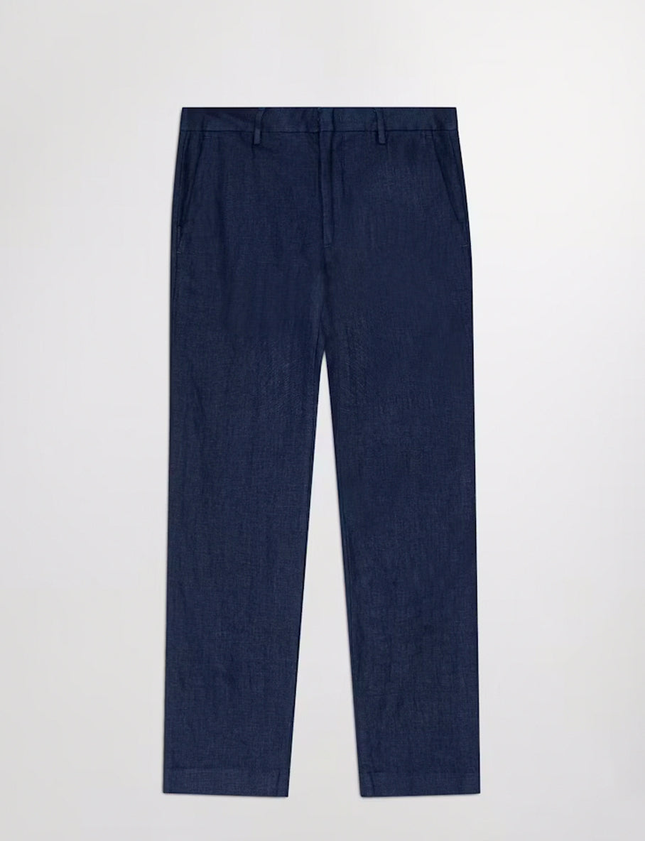 En lett og elegant bukse fra NN07 laget i europeisk lin med pustende kvalitet som gir høy komfort. Modellen har smal passform, middels livhøyde og klassiske detaljer som skrålommer i siden og innfelte lommer bak. Et tidløst valg som passer like godt på kontoret som til sommerens mer oppkledde anledninger.