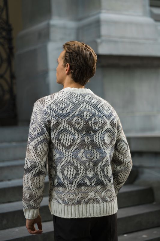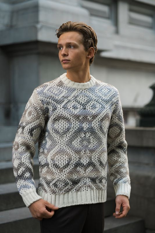 En myk og behagelig genser fra NN07 i varm ullblanding med jacquard-strikket mønster. Genseren har et avslappet, men stilig uttrykk og passer like godt alene som under en jakke på kjølige dager.