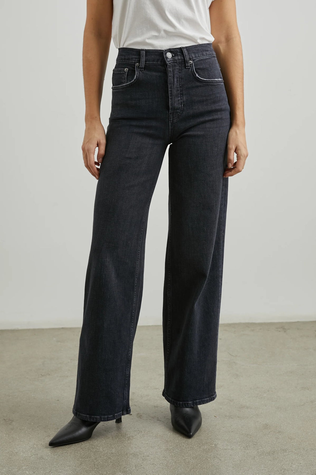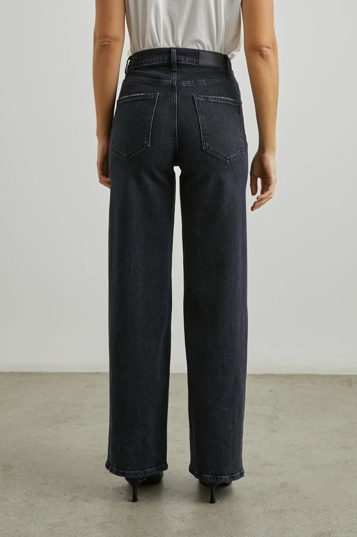 Getty Wide Leg fra Rails. Moderne innovasjon møter tradisjonelt design i Getty-modellen. Denne bestselgende jeansen skaper en timeglass-silhuett med høyt liv, og utsvingte ben. Jeansen har litt stretch og er komfortabel på, perfekt å bruke til hverdag.