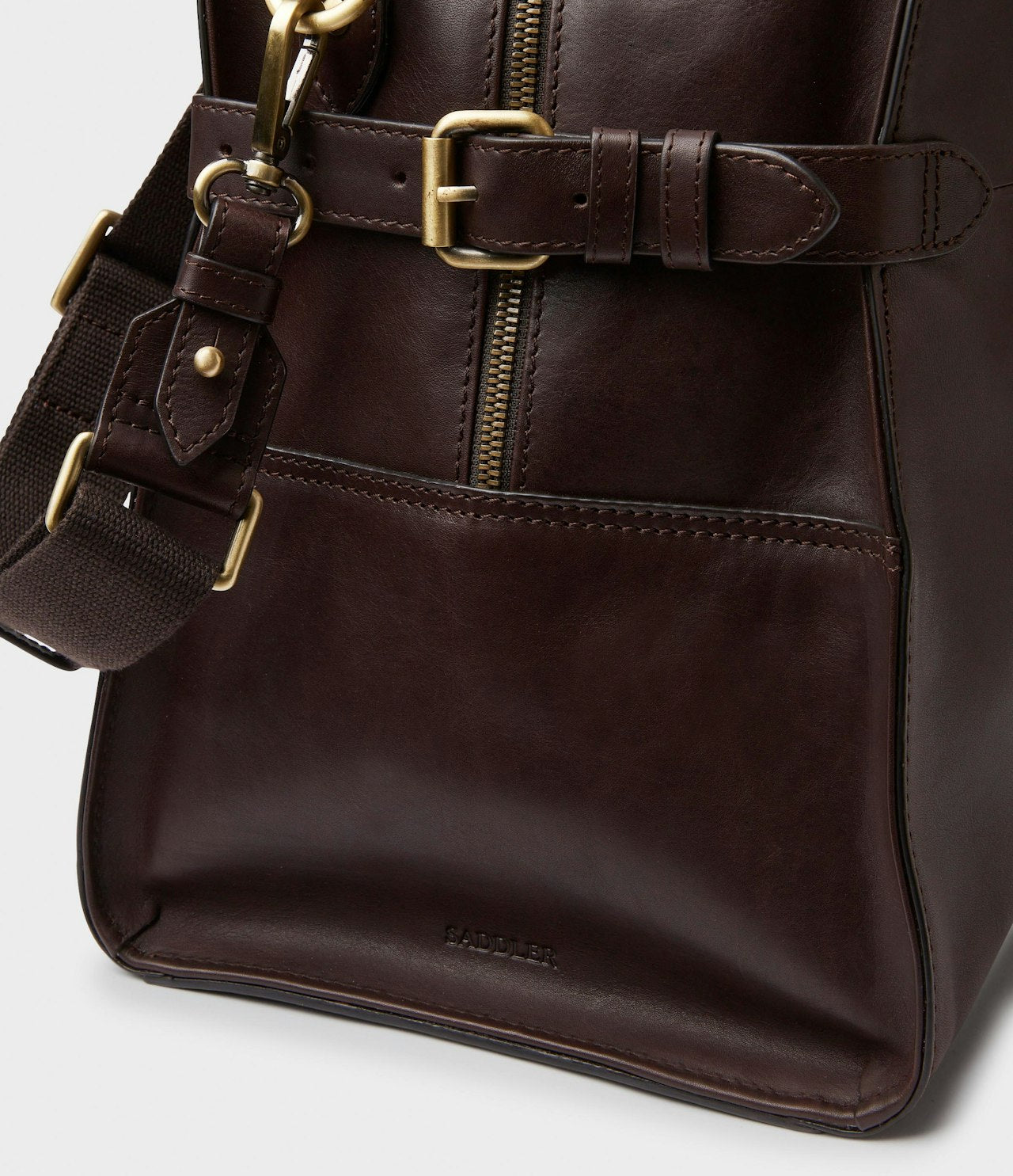 Alfred Bag fra Saddler er en eksklusiv og funksjonell veske laget i fullnarvet bøffelskinn av høy kvalitet. Skinnet får en vakker patina over tid og gir vesken et unikt, karakterfylt uttrykk. Den romslige utformingen gir god plass til laptop, dokumenter og alt du trenger i hverdagen, og hovedrommet lukkes med solid glidelås for trygg oppbevaring. Innsiden er utstyrt med både glidelomme og åpne lommer som gjør det enkelt å holde orden. Vesken har komfortable bærehåndtak samt en justerbar og avtagbar skulderrem, slik at den kan bæres både i hånden og over skulderen. Metalldetaljer og forsterkede sømmer understreker det håndverksmessige preget.