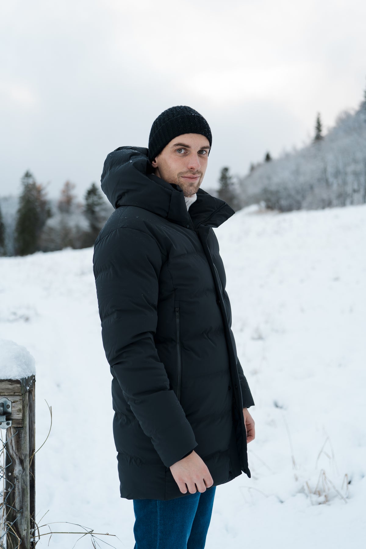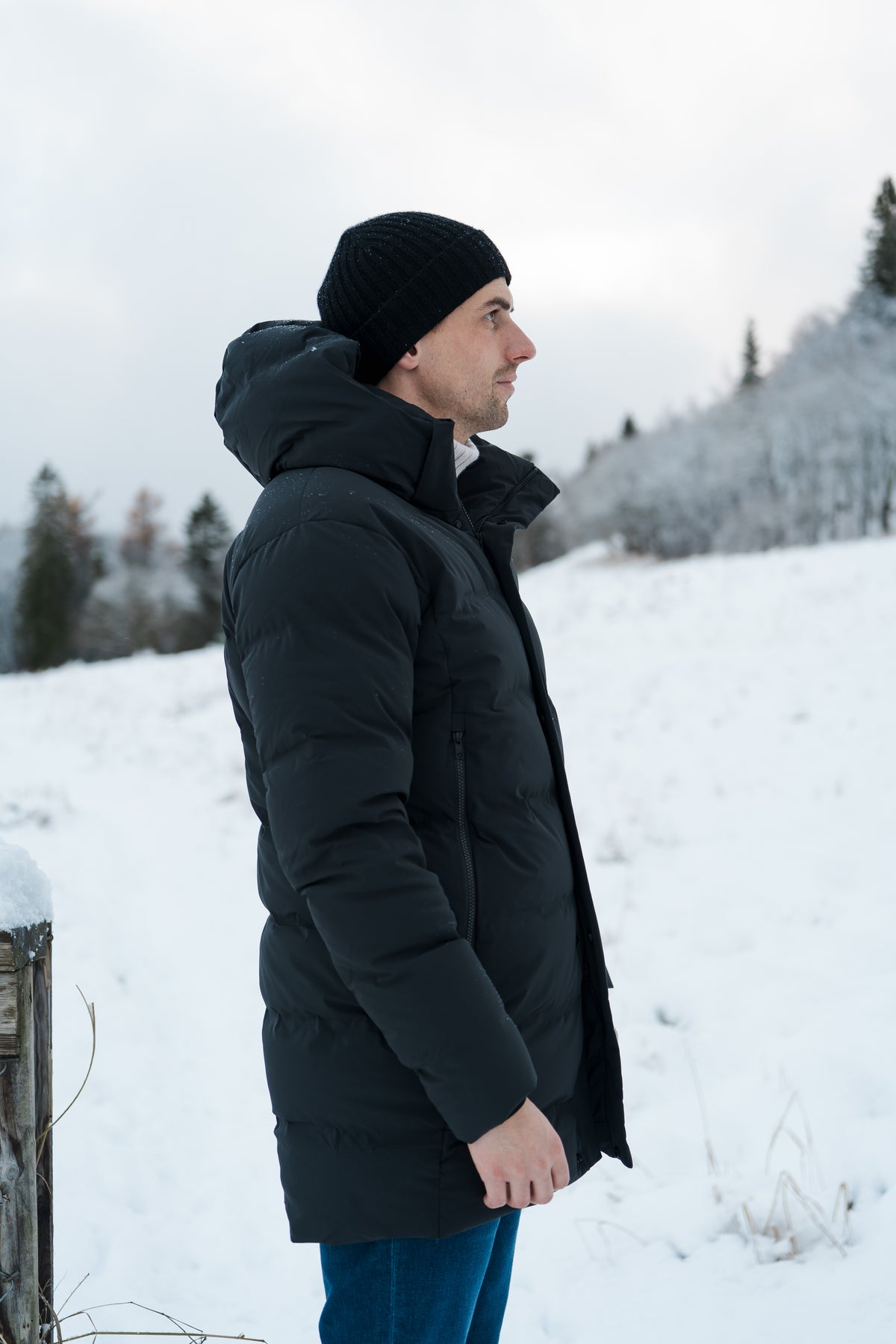 En teknisk og moderne vinterjakke fra Scandinavian Edition, laget for maksimal komfort og beskyttelse i kaldt vær. Jakken er vindtett, vannavstøtende og pustende, og fylt med dun som gir utmerket isolasjon uten å føles tung. Den har justerbar hette, praktiske lommer og et rent, urbant design som passer like godt til hverdags som over dressen. En allsidig jakke som kombinerer funksjon og stil gjennom hele vinteren.