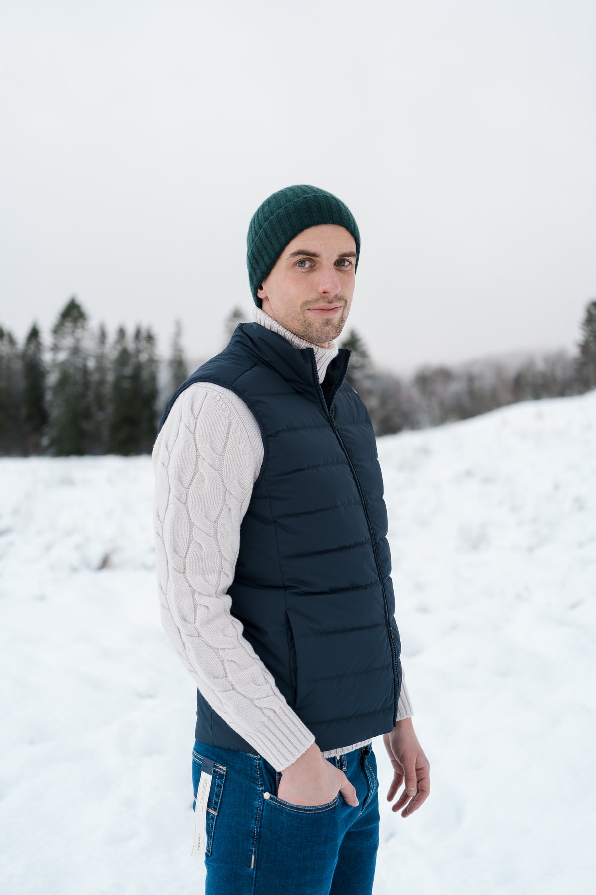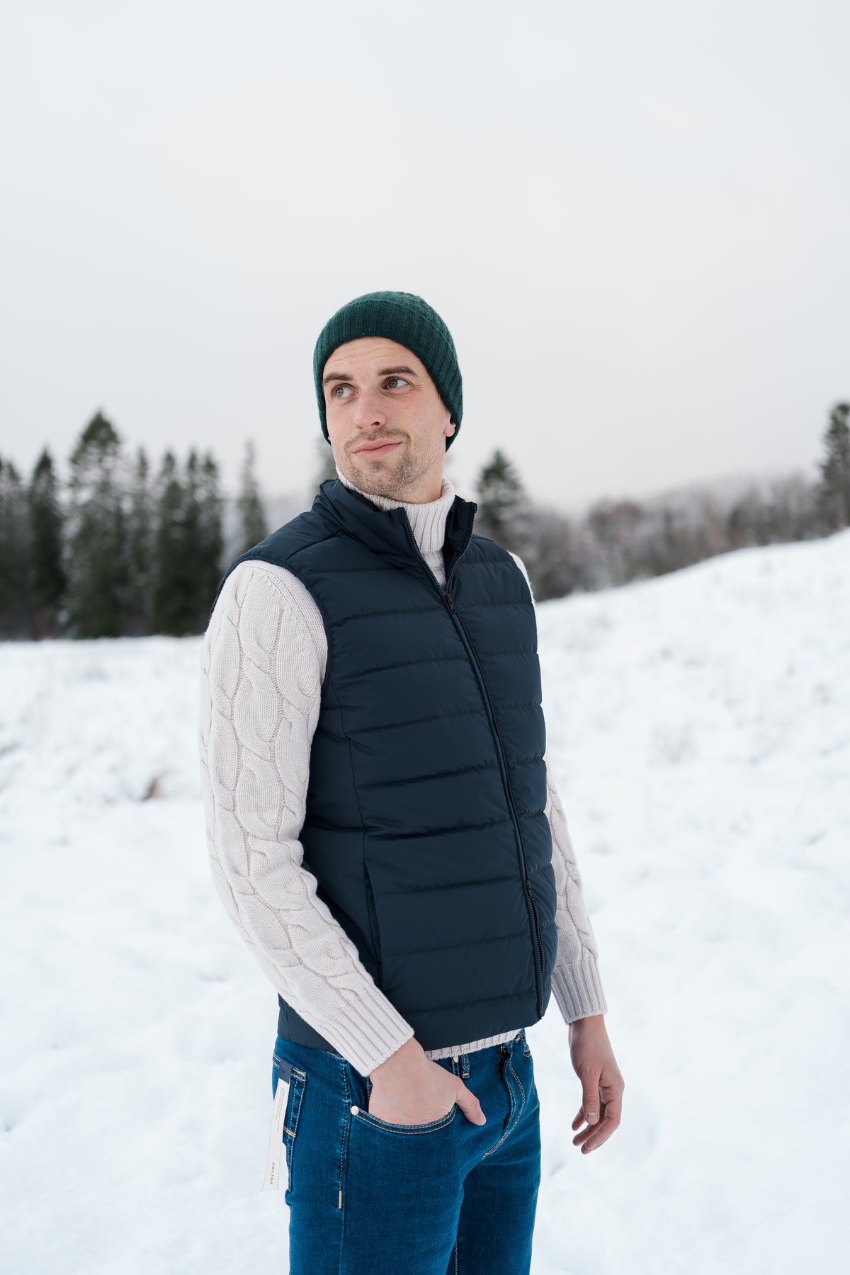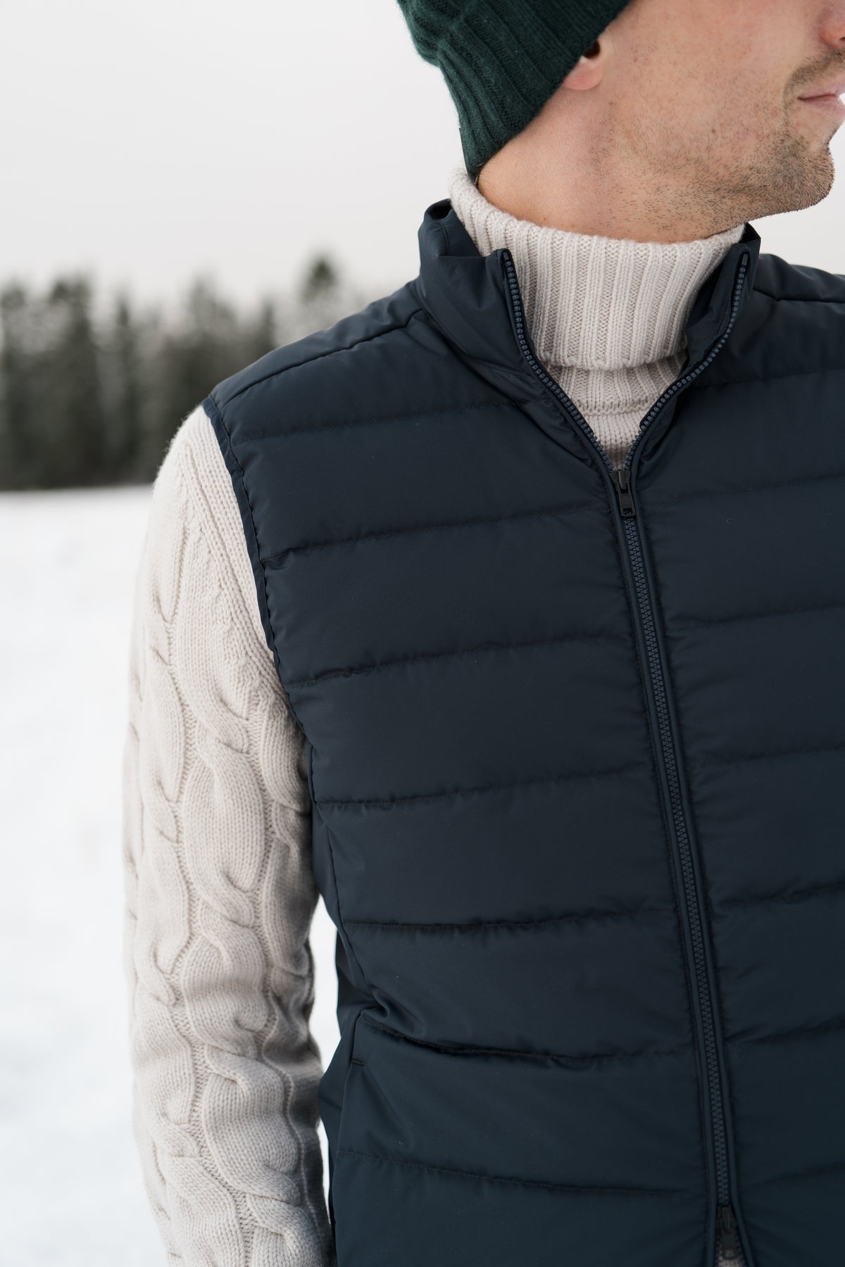 Ratio II er en klassisk vest med avsmalnet fasong. Den er designet som et lettvekts plagg som er lett å ta med seg, og enkel å bruke som lag på lag. Den er fylt med 90/10 RDS-sertifisert dun som isolerer godt. Vesten er fin å bruke på sommerstid for seg selv, eller under en jakke på vinteren. Normal i størrelsen.