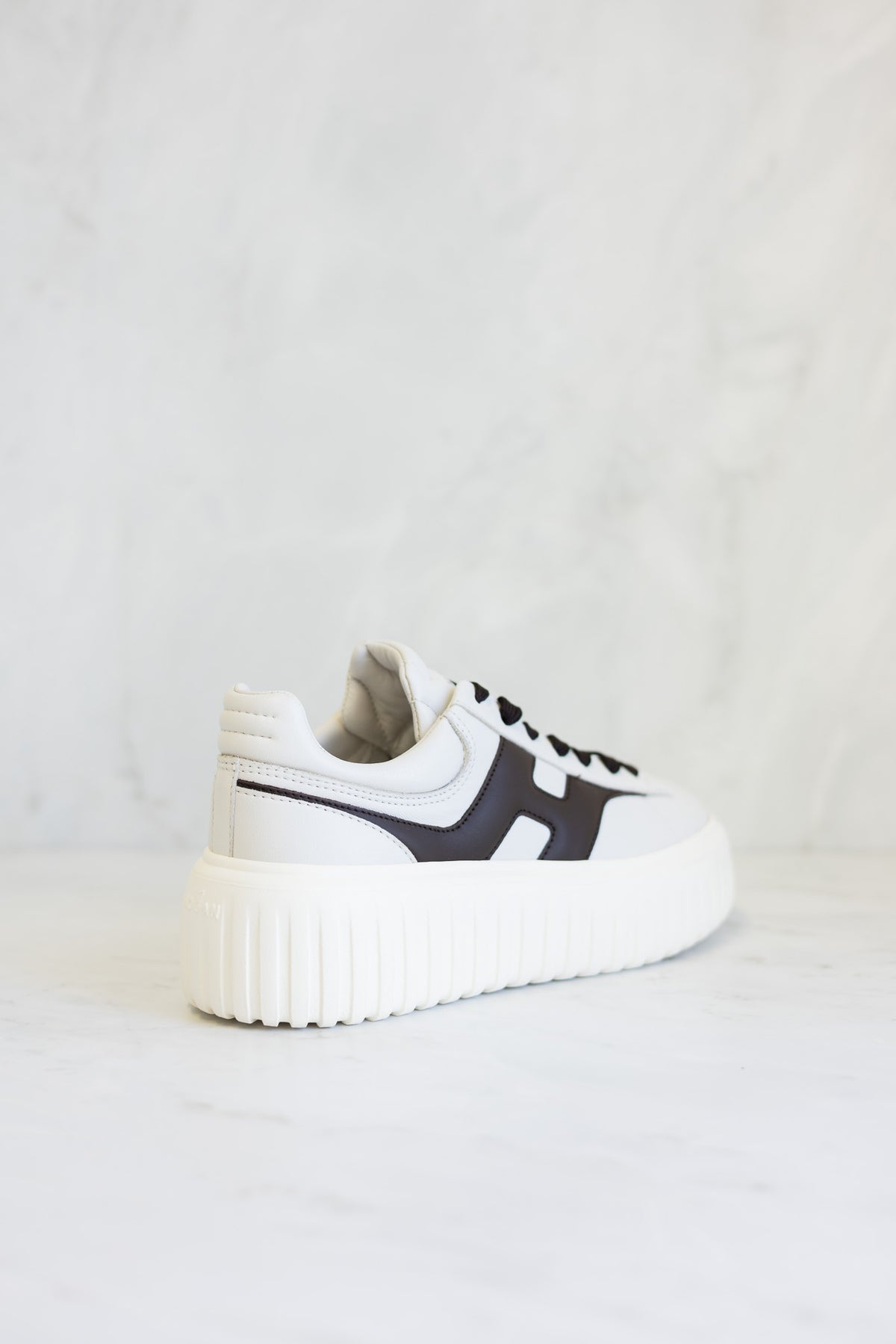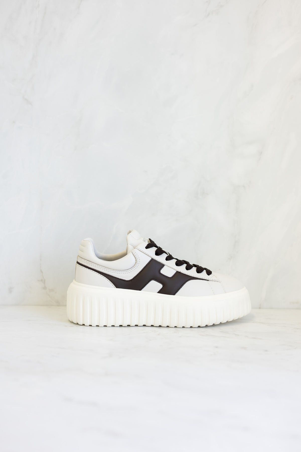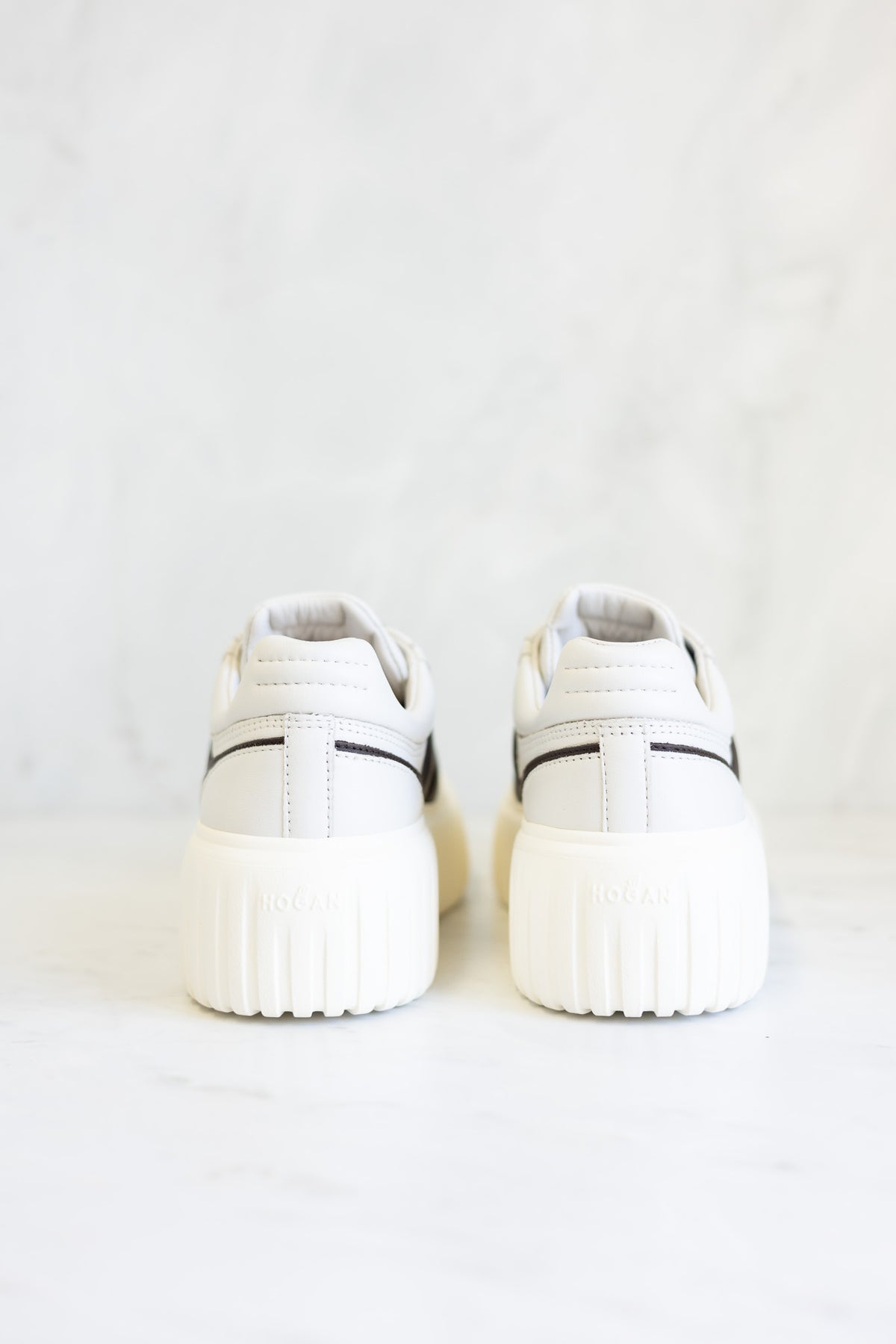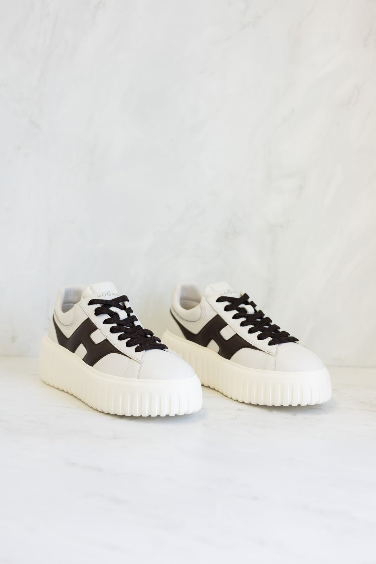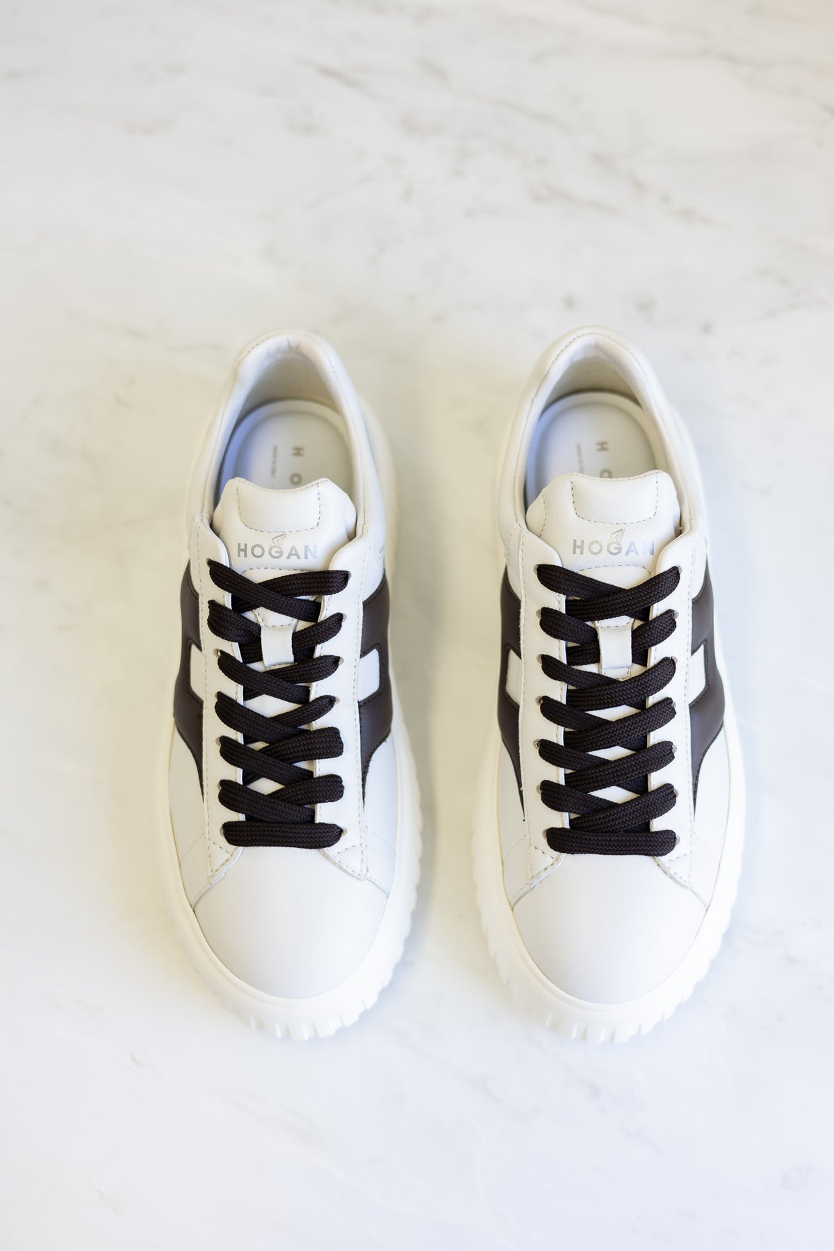 H-Stripes H Spezzata fra Hogan. Sneakersene har en sporty og allsidig stil, med en ekstra lett yttersåle med vertikale striper. Overdelen, med et kompakt balansert design, kjennetegnes av H-en som strekker seg over siden. Innersålen består av memory foam som garanterer komfortabel demping, og skoen passer perfekt til hverdagsbruk.